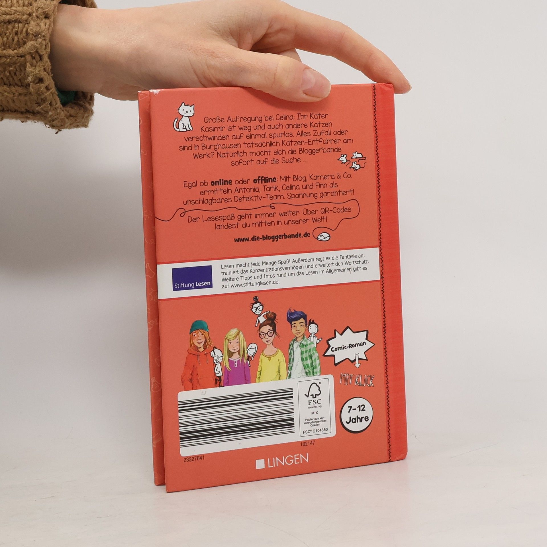 Große Aufregung bei Celina: Ihr Kater Kasimir ist weg und auch andere Katzen verschwinden auf einmal spurlos. Alles Zufall oder sind in Burghausen tatsächlich Katzen-Entführer am Werk? Natürlich macht sich die Bloggerbande sofort auf die Suche. Egal ob online oder offline: Mit Blog, Kamera & Co. ermitteln Antonia, Tarik, Celina und Finn als unschlagbares Detektiv-Team. Spannung garantiert! Ein crossmediales Leseerlebnis und Comic-Roman mit Klick: Über QR-Codes im Buch landet man auf weitere spannende, kindgerechte Artikel im Internet-Blog der Bloggerbande. Medienkompetenz im Blick: Neben der spannenden Geschichte im Buch ist die Sicherheit im Netz immer großes Thema bei der Bloggerbande. Lesespaß und das verantwortungsbewusste Nutzen elektronischer Medien im einen: offline und online spannend für Kinder von 7 bis 12 Jahren Die Bloggerbande ist eine Buchreihe rund um die vier Kinder Antonia, Tarik, Celina und Finn: Jedes Buch kann unabhängig von den anderen und der Reihenfolge gelesen. Hochwertiges Hardcover Buch im Taschenbuchformat: 19 x 13 cm und FSC zertifiziert Das Crossmediale Leseerlebnis Die Buchreihe der Bloggerbande ist ein crossmediales Leseerlebnis. Neben den spannenden Büchern, die von den abenteuerlichen Fällen der Bloggerbande erzählen, gibt es auch einen Blog im Internet.