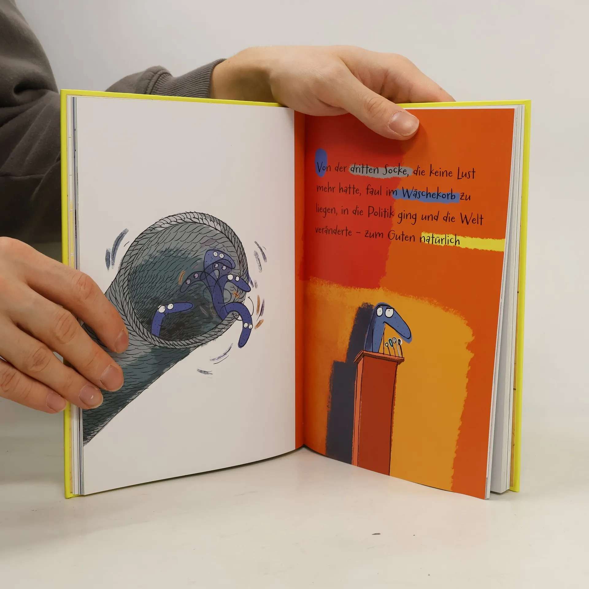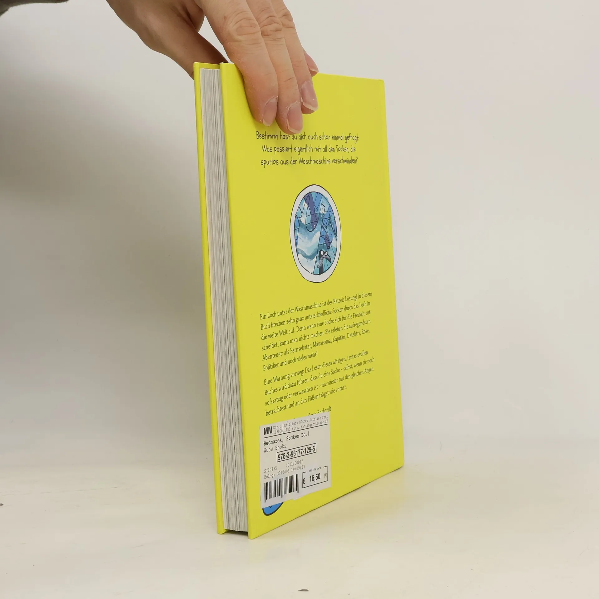 Bestimmt hast du dich auch schon einmal gefragt: Was passiert eigentlich mit all den Socken, die spurlos aus der Waschmaschine verschwinden? Ein Loch unter der Waschmaschine ist des Rätsels Lösung! In diesem Buch brechen zehn ganz unterschiedliche Socken durch das Loch in die weite Welt auf. Denn wenn eine Socke sich für die Freiheit entscheidet, kann man nichts machen. Sie erleben die aufregendsten Abenteuer: als Fernsehstar, Mäuseoma, Kapitän, Detektiv, Rose, Politiker und noch vieles mehr! Eine Warnung vorweg: Das Lesen dieses witzigen, fantasievollen Buches wird dazu führen, dass du eine Socke – selbst, wenn sie noch so kratzig oder verwaschen ist – nie wieder mit den gleichen Augen betrachtest und an den Füßen trägst wie vorher. Band 1 der Socken -Reihe