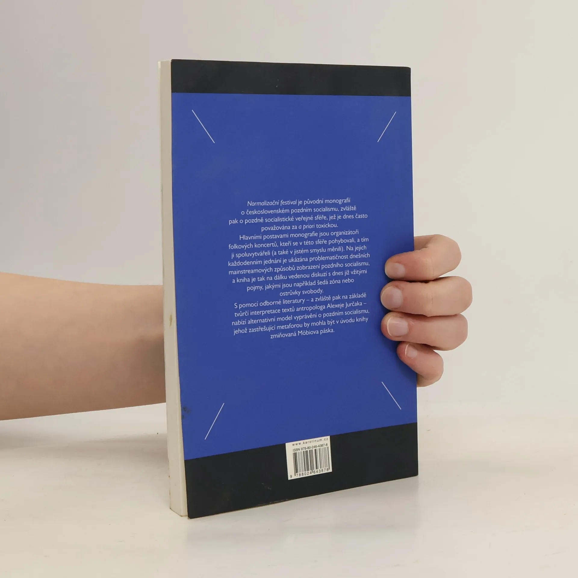 Normalizační festival je původní monografií o československém pozdním socialismu, zvláště pak o pozdně socialistické veřejné sféře, jež je dnes často považována za a priori toxickou. Hlavními postavami monografie jsou organizátoři folkových koncertů, kteří se v této sféře pohybovali, a tím ji spoluvytvářeli (a také v jistém smyslu měnili). Na jejich každodenním jednání je ukázána problematičnost dnešních mainstreamových způsobů zobrazení pozdního socialismu, a kniha je tak na dálku vedenou diskuzí s dnes již vžitými pojmy, jakými jsou například šedá zóna nebo ostrůvky svobody. S pomocí odborné literatury – a zvláště pak na základě tvůrčí interpretace textů antropologa Alexeje Jurčaka – nabízí alternativní model vyprávění o pozdním socialismu, jehož zastřešující metaforou by mohla být v úvodu knihy zmiňovaná Möbiova páska.