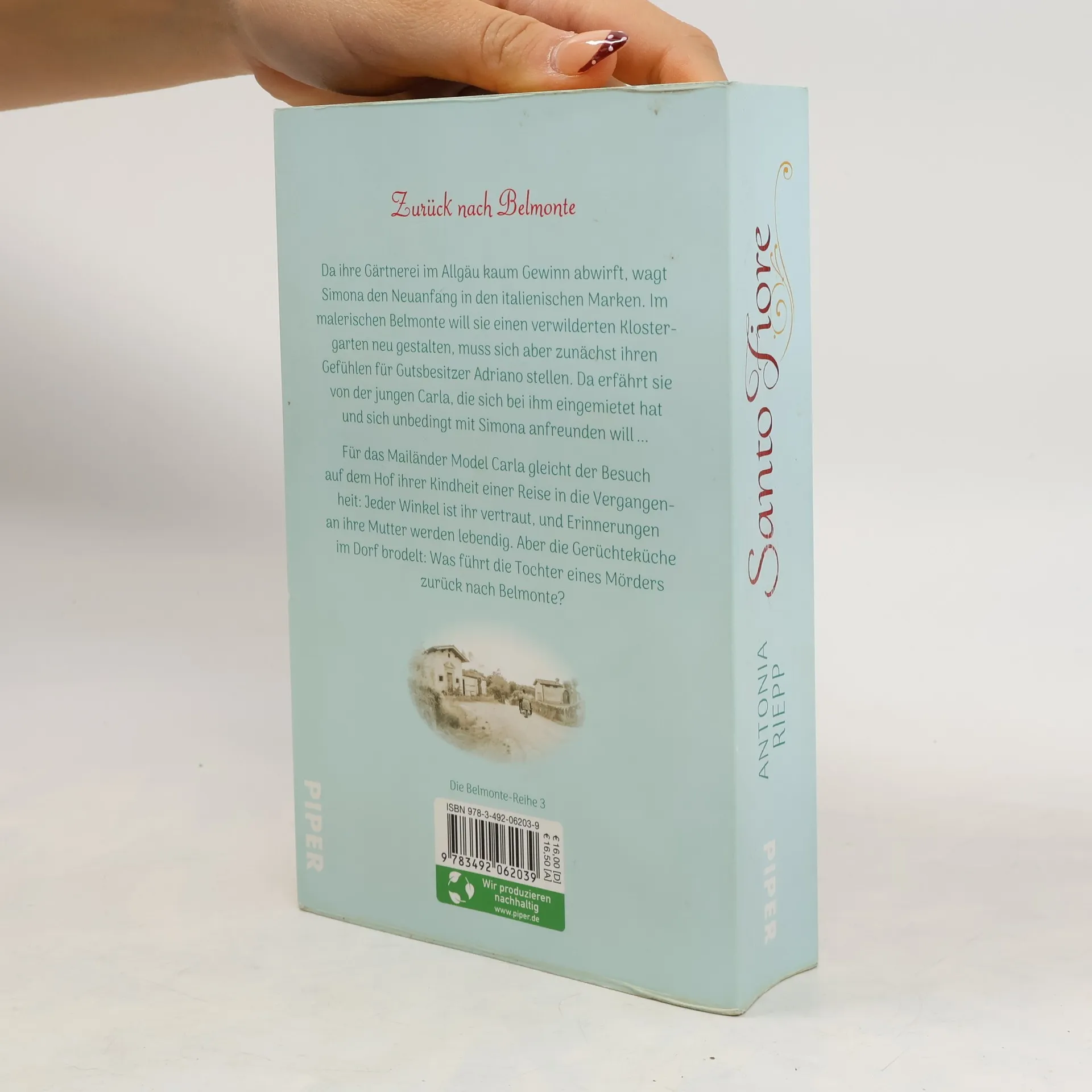 Ein verwilderter Garten, ein alter Gutshof und die Suche nach der eigenen Geschichte ... Da ihre Gärtnerei im Allgäu kaum Gewinn abwirft, wagt Simona den Neuanfang bei ihrer Familie in den italienischen Marken. In Belmonte will die junge Landschaftsgärtnerin einen verwilderten Klostergarten wiederaufleben lassen und ihr Herzklopfen für Gutshofbesitzer Adriano ergründen. Doch dann erfährt sie von der Mailänderin Carla, die ein Zimmer bei ihm bezogen hat ... Für Carla gleicht der Besuch des Gutshofs ihrer Kindheit einer Reise in die Vergangenheit: Jeder Winkel des herrschaftlichen Gebäudes ist ihr vertraut, und Erinnerungen an ihre Mutter werden lebendig. Aber in der Vergangenheit lauert Dunkles. Und die Gerüchteküche im Dorf brodelt: Was führt die Tochter eines Mörders zurück nach Belmonte? »Santo Fiore« ist wie eine Reise ans Mittelmeer und zu sich selbst. In ihrem neuen Roman erzählt SPIEGEL-Bestsellerautorin Antonia Riepp (»Belmonte«, »Villa Fortuna«) eine ebenso dramatische wie bewegende Familiengeschichte zwischen Deutschland und Italien. Von Liebe und Verlust, Geheimnis und Verrat, Familie und Versöhnung. Der malerische Ort »Belmonte« wird in »Santio Fiore« erneut zum Schauplatz einer emotionalen Saga. »Die Autorin ist eine wunderbare Erzählerin.« Sempacher Woche »Die Autorin trifft souverän den Ton ihrer vielschichtigen Figuren.« Allgäuer Zeitung