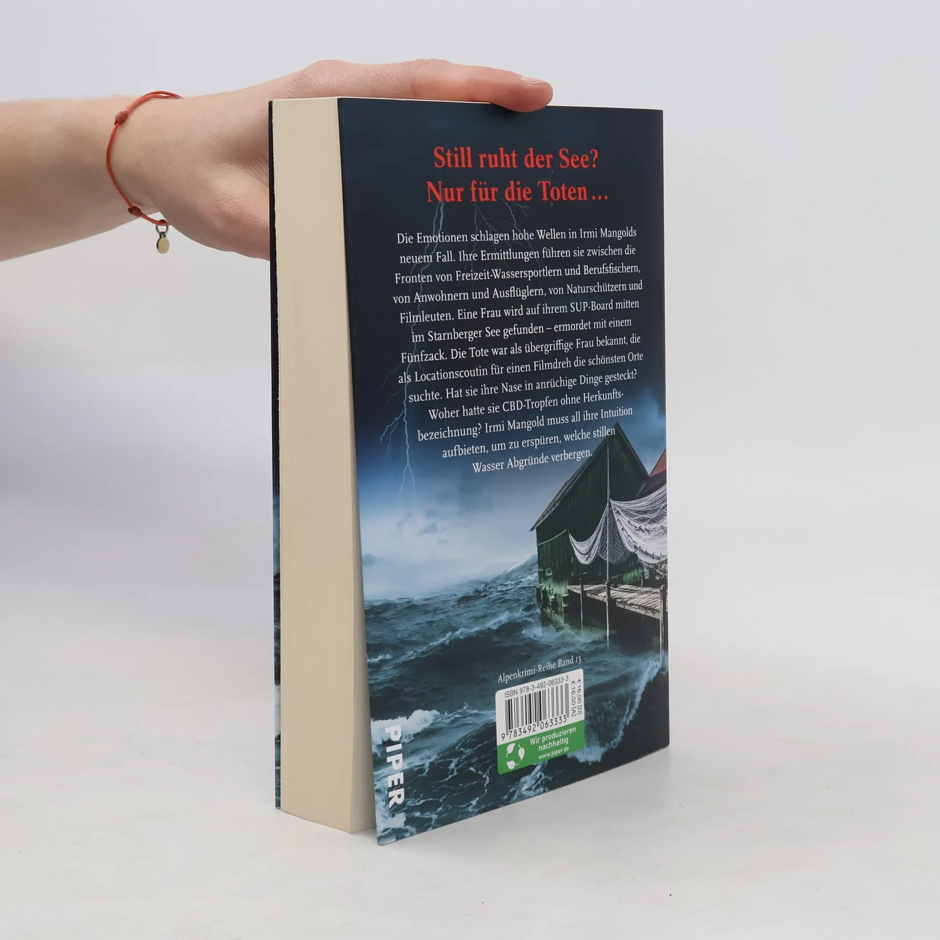 Spannung in Serie: Nicola Förgs Alpen-Krimis bieten Lokalkolorit, brisante aktuelle Themen um Natur- und Umweltschutz und eine intelligente Krimi-Handlung. Für »Hohe Wogen«, Band 13 ihrer beliebten Krimi-Reihe, wählt die SPIEGEL-Bestsellerautorin den Starnberger See als idyllischen Schauplatz für einen ungewöhnlichen Mord: Eine Frau wird auf ihrem SUP-Board mitten im See gefunden – getötet mit einem Fünfzack. Irmi Mangolds Ermittlungen führen sie zwischen die Fronten von Freizeit-Wassersportlern und Berufsfischern, von Anwohnern und Ausflüglern, von Naturschützern und Erholung Suchenden. Die Emotionen schlagen hohe Wellen in diesem neuen Fall. Die Tote war vielen in der Region als übergriffige Frau bekannt, die als Locationscoutin für einen Filmdreh die schönsten Orte suchte. Hat sie ihre Nase in anrüchige Dinge gesteckt? Irmi Mangold muss all ihre Intuition aufbieten, um zu erspüren, welche stillen Wasser Abgründe verbergen. »Nicola Förg ist wieder ein großartiger Roman gelungen. Bei jedem neuen Thema lernt man etwas dazu. Es ist immer wieder ein Vergnügen, mit Irmi Mangold und ihrem Team auf Täterjagd zu gehen.« Radiolounge