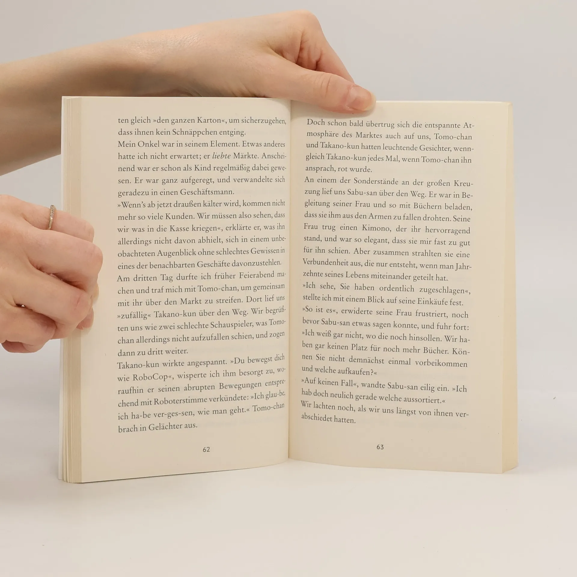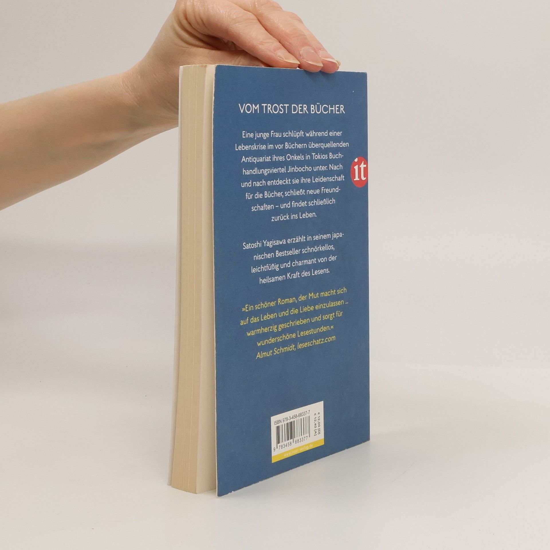 Satoshi Yagisawa erzählt in seinem Bestseller schnörkellos, leichtfüßig und charmant von einer jungen Frau, die durch die heilsame Kraft des Lesens zurück ins Leben und zu neuen Freundschaften findet. Die 25-jährige Takako hat einen Job, eine Wohnung in Tokio und einen festen Freund. Als dieser ihr eines Abends freudig eröffnet, er werde heiraten – und zwar eine andere –, fällt sie aus allen Wolken. Vor Kummer verkriecht sie sich und kündigt ihren Job. Als ihr Onkel ihr anbietet, eine Zeitlang in seinem Antiquariat im berühmten »Bücherviertel« Tokios, Jimbōchō, auszuhelfen und dort auch unterzukommen, findet sie das zwar zunächst alles andere als reizvoll, willigt aber ein. Doch in dem kleinen Zimmer über dem Laden, inmitten von Büchern, entdeckt sie ihre Leidenschaft fürs Lesen – und schöpft allmählich wieder neue Kraft.