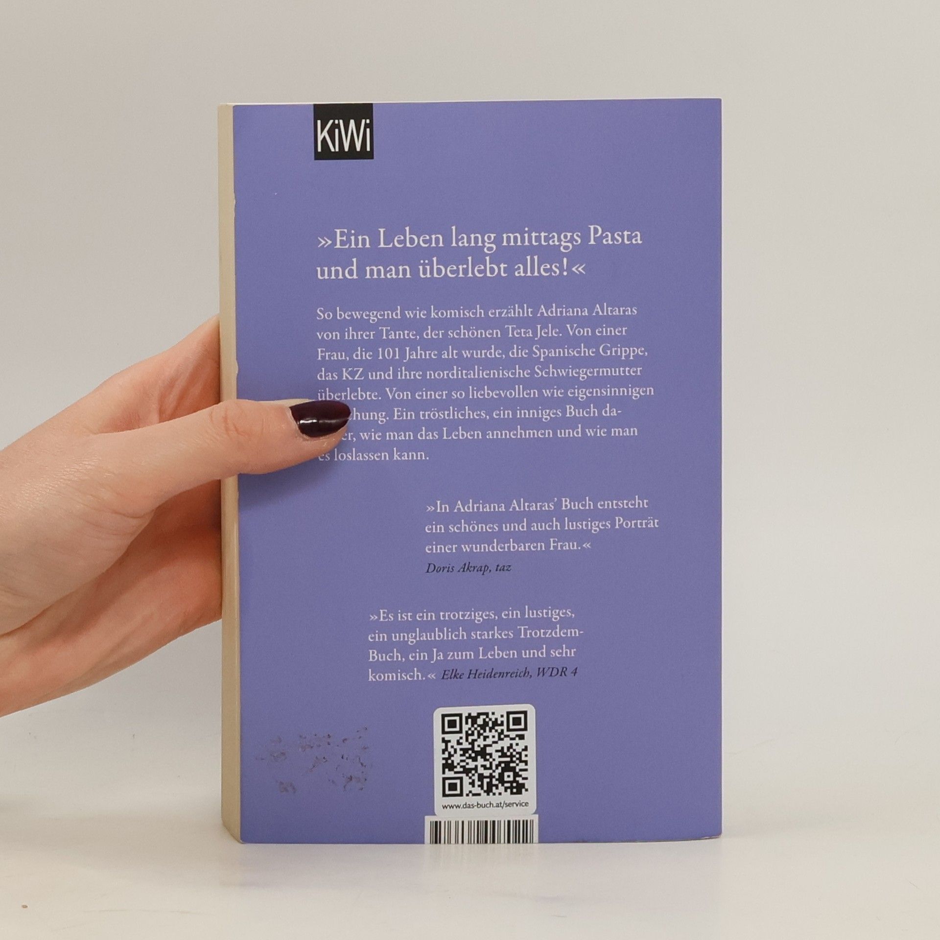 Adriana Altaras erzählt von ihrer Tante Jele, die 101 Jahre alt wurde und zahlreiche Herausforderungen überstand. Ihre Beziehung ist liebevoll und eigensinnig, geprägt von Erinnerungen und pragmatischen Ratschlägen. Während der Pandemie telefonieren sie häufig und reflektieren über Jeles faszinierendes Leben. Ein humorvolles Porträt einer starken Frau.