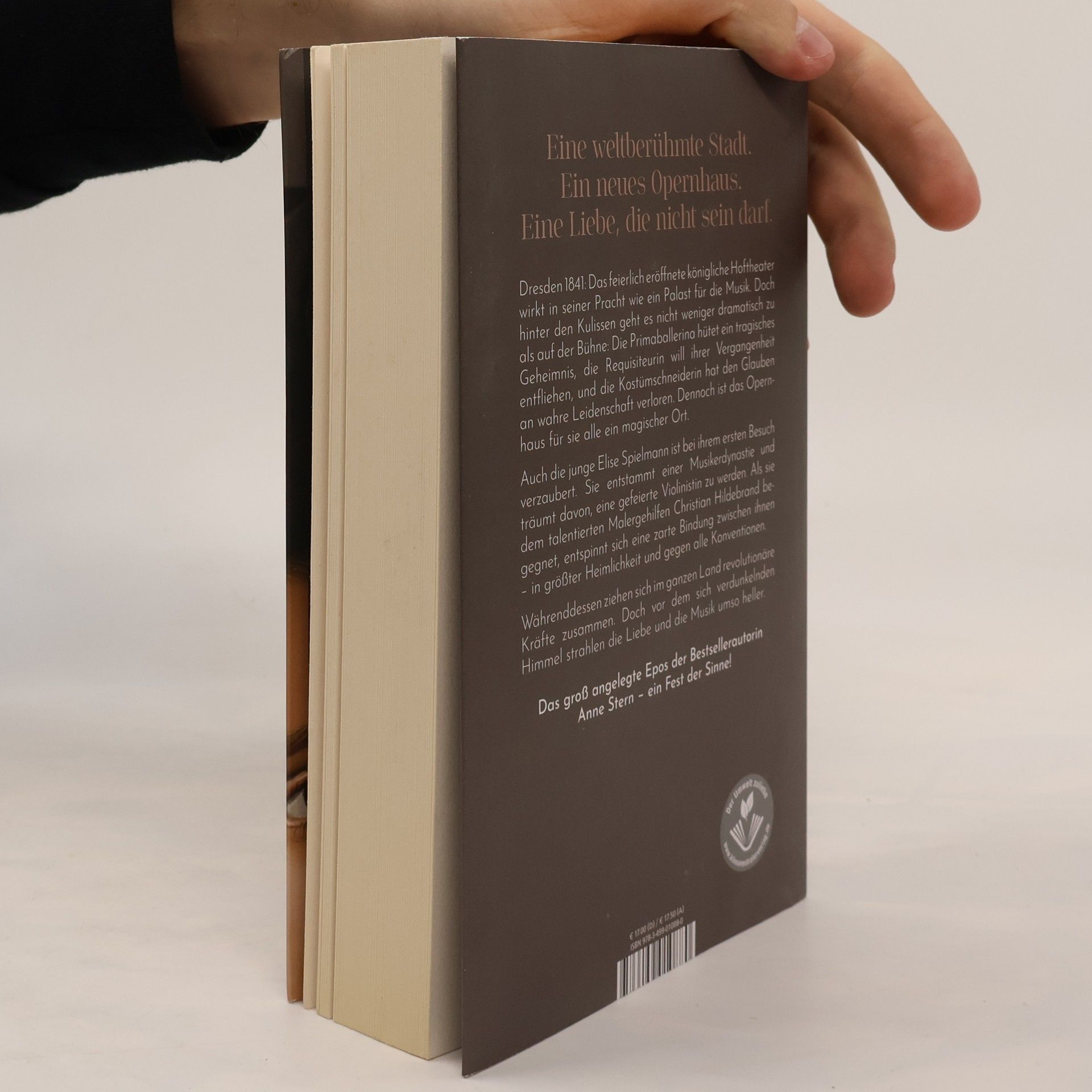 Eine weltberühmte Stadt. Ein neues Opernhaus. Eine Liebe, die nicht sein darf. Und der Klang unsterblicher Musik. Dresden 1841: Das feierlich eröffnete königliche Hoftheater wirkt in seiner Pracht wie ein Palast für die Musik. Doch hinter den Kulissen geht es nicht weniger dramatisch zu als auf der Bühne: Die Primaballerina hütet ein tragisches Geheimnis, die Requisiteurin will ihrer Vergangenheit entfliehen, und die Kostümschneiderin hat den Glauben an wahre Leidenschaft verloren. Dennoch ist das Opernhaus für sie alle ein magischer Ort. Auch die junge Elise Spielmann ist bei ihrem ersten Besuch verzaubert. Sie entstammt einer Musikerdynastie und träumt davon, eine gefeierte Violinistin zu werden. Als sie dem talentierten Malergehilfen Christian Hildebrand begegnet, entspinnt sich eine zarte Bindung zwischen ihnen – in größter Heimlichkeit und gegen alle Konventionen. Währenddessen ziehen sich im ganzen Land revolutionäre Kräfte zusammen. Doch vor dem sich verdunkelnden Himmel strahlen die Liebe und die Musik umso heller. Das groß angelegte Epos der Bestsellerautorin Anne Stern zur wechselvollen Geschichte der Semperoper: berührende Schicksale vor und hinter den Kulissen, ein Fest der Sinne.