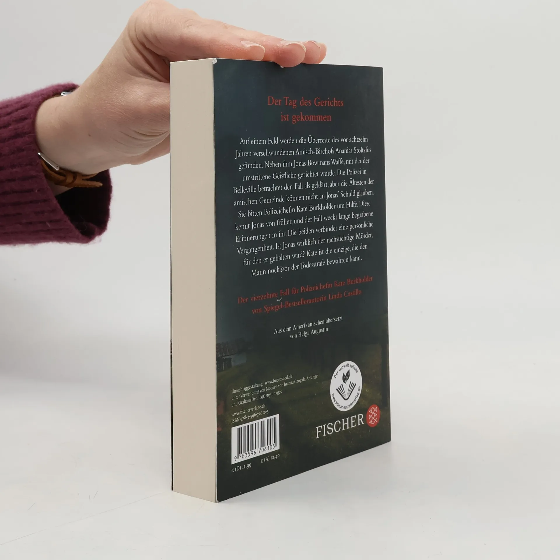 Der Tag des Gerichts ist gekommen Auf einem Feld werden die Knochen des vor achtzehn Jahren verschwundenen Amisch-Bischofs Ananias Stoltzfus gefunden. Neben ihm liegt die Waffe von Jonas Bowman, mit der der umstrittene Geistliche gerichtet wurde. Die Polizei in Pennsylvania glaubt, in Bowman den Täter gefunden zu haben, aber die Ältesten der amischen Gemeinde können nicht an Jonas’ Schuld glauben und bitten Polizeichefin Kate Burkholder um Hilfe. Kate kennt Jonas von früher und der Fall weckt lange begrabene Erinnerungen in ihr, denn die beiden verbindet eine persönliche Vergangenheit. Ist Jonas wirklich der rachsüchtige Mörder, für den er gehalten wird? Jetzt ist Kate die einzige, die den Mann vor der Todesstrafe bewahren kann.