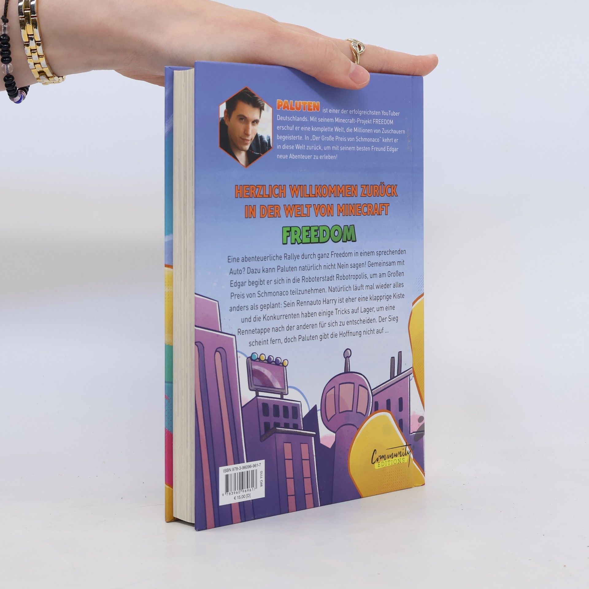 Achtung — anschnallen! Im neuen FREEDOM-Band wird Paluten zum Rennfahrer. Paluten ist einer der meistgeklickten YouTuber und entertaint Gaming-affine Kids ab 10 Jahren mit seinen witzigen Videos. In seinen beliebten Romanen erlebt er coole Abenteuer in der Welt von FREEDOM. Nach »Die Schmahamas-Verschwörung«, »Schlamassel im Weltall«, »Donnerwetter am Mount Schmeverest«, »Reise zum Mittelschlund der Erde« und »Verschollen im Berschmudadreieck« nimmt Paluten nun am großen Preis von Schmonaco teil.