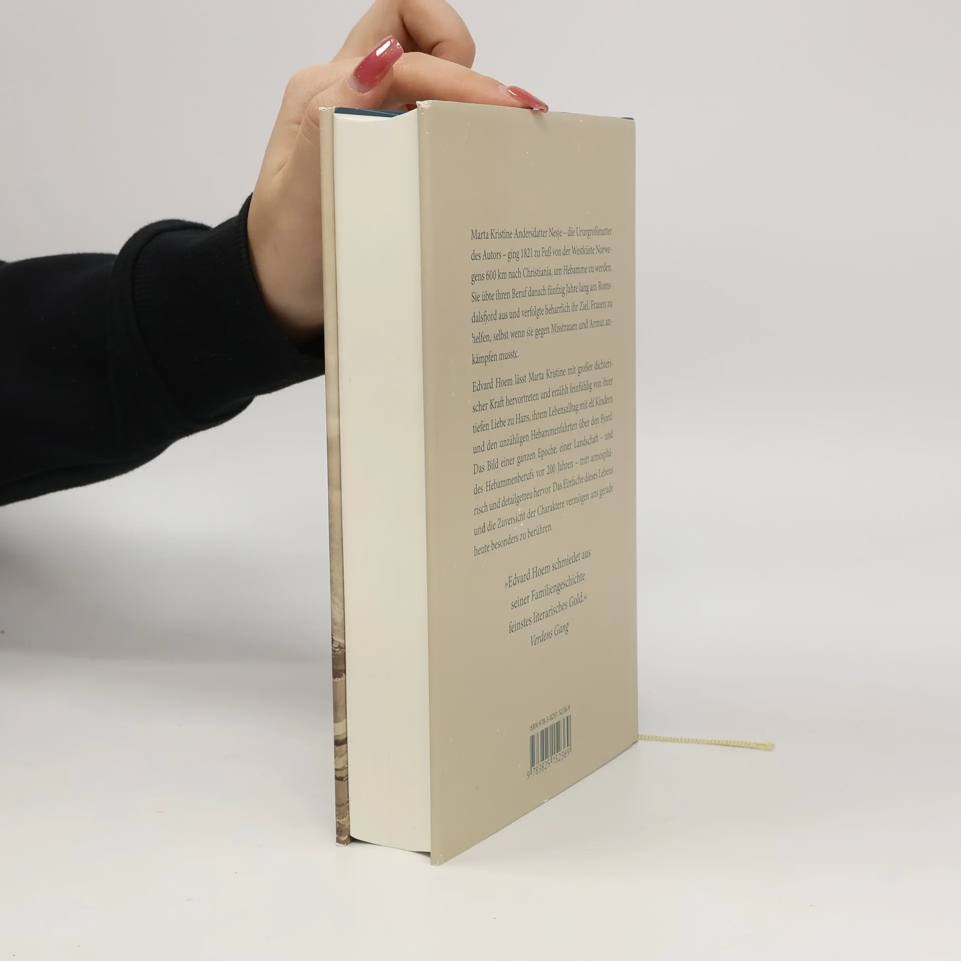 Großartiges Porträt einer mutigen Frau Marta Kristine Andersdatter Nesje, die Ururgroßmutter des Autors, ging 1821 zu Fuß 600 km von der Westküste Norwegens nach Christiania, um Hebamme zu werden. Danach übte sie ihren Beruf fünfzig Jahre lang am Romsdalfjord aus und verfolgte beharrlich ihr Ziel, Frauen zu helfen – wobei sie lange gegen Misstrauen und Armut ankämpfen musste. Edvard Hoem lässt Marta Kristine mit enormer dichterischer Kraft hervortreten. Er erzählt feinfühlig von ihrer tiefen Liebe zu Hans, ihrem Lebensalltag mit elf Kindern und von den unzähligen Hebammenfahrten über den Fjord. Das Bild einer ganzen Epoche, einer Landschaft – und insbesondere des Hebammenberufs vor 200 Jahren – tritt atmosphärisch und detailgetreu hervor. Das Einfache dieses Lebens und die Zuversicht der Charaktere vermögen uns gerade heute besonders zu berühren.