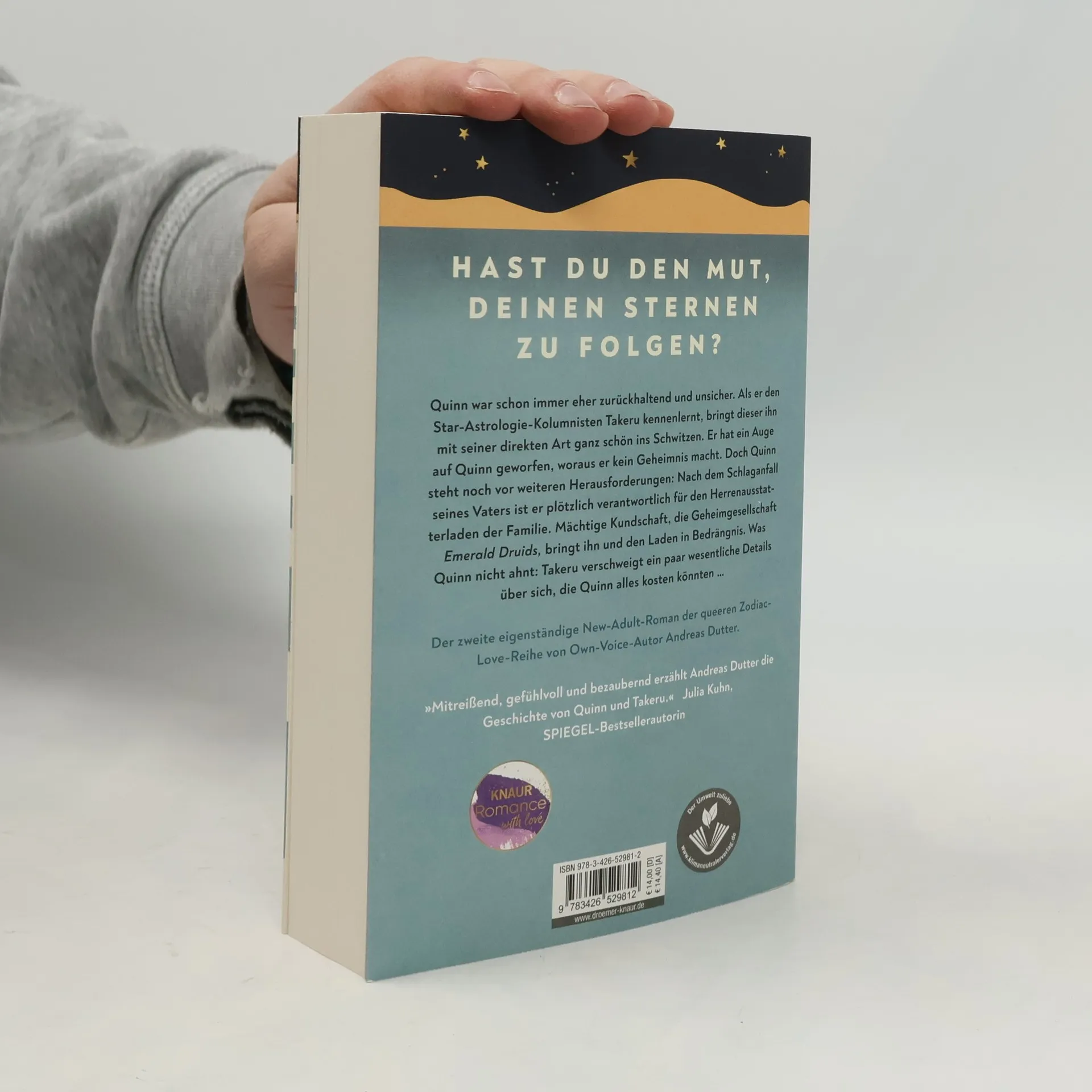 Hast du den Mut, deinen Sternen zu folgen? In »Zodiac Love: Hope in Our Universe«, dem zweiten eigenständigen Roman der queeren New-Adult-Reihe »Zodiac Love« von Andreas Dutter, steht Quinn vor großen Entscheidungen. Quinn war schon immer eher zurückhaltend und unsicher. Als er den Star-Astrologie-Kolumnisten Takeru kennenlernt, bringt dieser ihn mit seiner direkten Art ganz schön ins Schwitzen. Er hat ein Auge auf Quinn geworfen, woraus er kein Geheimnis macht. Doch Quinn steht noch vor weiteren Herausforderungen: Nach dem Schlaganfall seines Vaters ist er plötzlich verantwortlich für den Herrenausstatterladen der Familie. Mächtige Kundschaft, die Geheimgesellschaft Emerald Druids, bringt ihn und den Laden in Bedrängnis. Was Quinn nicht ahnt: Takeru verschweigt ein paar wesentliche Details über sich, die Quinn alles kosten könnten … Andreas Dutter ist in der LGBTQIAP+-Community aktiv und auch auf Instagram und TikTok zu finden. Astrologie und inwieweit Sternzeichen das Leben beeinflussen und bei wichtigen Entscheidungen weiterhelfen können, damit beschäftigt er sich in Quinns Geschichte – ein Thema, das ihn schon länger fasziniert. Der Own-Voice-Autor hat sich mit der queeren New-Adult-Reihe »Zodiac Love« selbst einen Traum erfüllt. »Mitreißend, gefühlvoll und bezaubernd erzählt Andreas Dutter die Geschichte von Quinn und Takeru.« (Julia Kuhn, SPIEGEL-Bestsellerautorin)