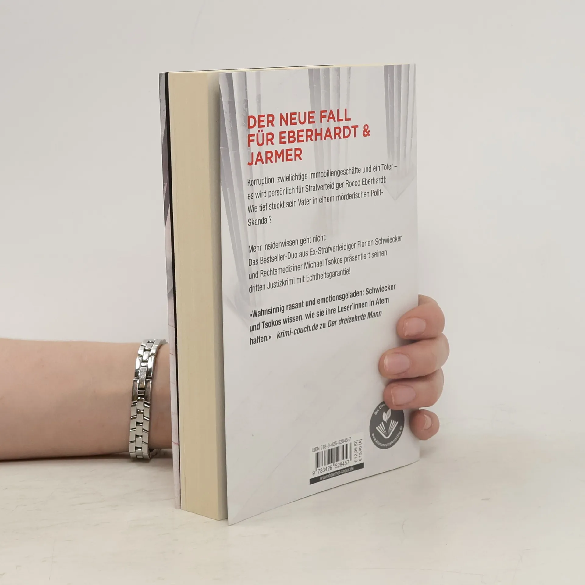 Es wird persönlich für Strafverteidiger Rocco Eberhardt: Wie tief steckt sein Vater in einem mörderischen Polit-Skandal? Im 3. Justiz-Krimi der Bestseller-Autoren Michael Tsokos (Rechtsmediziner) und Florian Schwiecker (früherer Strafverteidiger) geht es um Korruption, zwielichtige Immobilien-Geschäfte – und einen Mord. Ein Polit-Skandal erschüttert Berlin: In einem geleakten Video ist zu sehen, wie Bausenator Dieter Möller schmutzige Immobiliendeals mit einem russischen Oligarchen aushandelt - auch der Vater von Strafverteidiger Rocco Eberhardt soll darin verwickelt sein. Als der für das Video verantwortliche Tontechniker auf dem Seziertisch von Rechtsmediziner Dr. Justus Jarmer landet, lautet die Anklage gegen Möller plötzlich auf Mord. In die Enge getrieben, bittet er Rocco um Hilfe und beteuert seine Unschuld. Doch die ermittelnde Kommissarin findet immer mehr Beweise gegen den Bausenator, und Rocco muss sich fragen, ob sein Vater einen Mörder deckt … »Die Justiz-Krimis um Strafverteidiger Rocco Eberhardt und Rechtsmediziner Justus Jarmer sind Hochgeschwindigkeitskrimis, die keine Haltestation kennen!« Alex Dengler, denglers-buchkritik. de Die Justiz-Krimi-Reihe »Eberhardt & Jarmer ermitteln« der Bestseller-Autoren Florian Schwiecker und Michael Tsokos ist in folgender Reihenfolge erschienen: Die siebte Zeugin (Platz 3 der SPIEGEL-Bestsellerliste) Der dreizehnte Mann (Platz 4 der SPIEGEL-Bestsellerliste) Die letzte Lügnerin