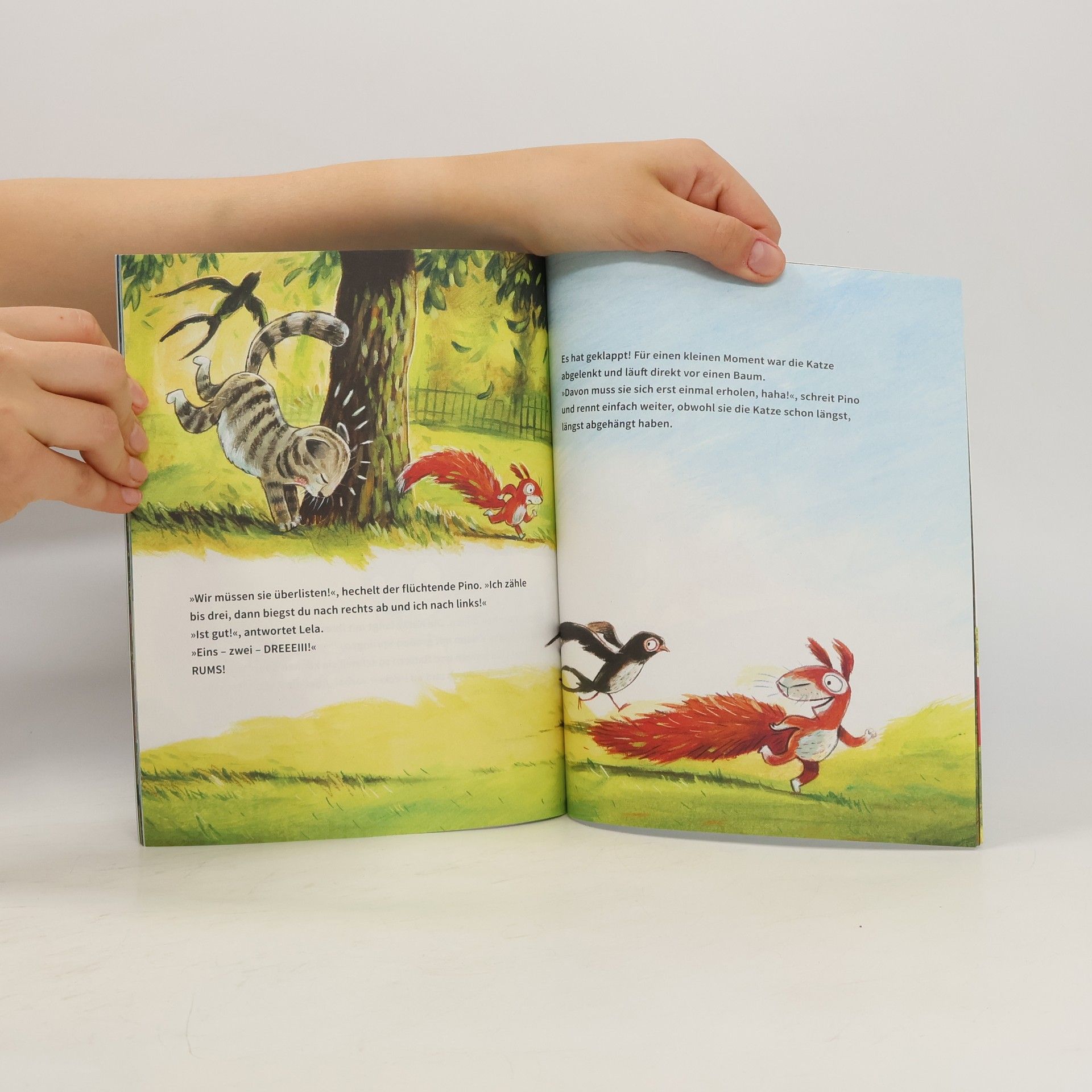 Eine Tier-Bilderbuchgeschichte über Mut und Zusammenhalt ab 3 Jahren. Eichhörnchen Pino bekommt Post: eine Geburstags-Einladung seiner Oma! Er freut sich, doch seine Oma lebt in der großen fremden Stadt. Die Reise dorthin ist viel zu gefährlich. Was kann da nicht alles schiefgehen. Besser er bleibt im Wald, wo er sich auskennt. Doch seine Freundin, die Schwalbe Lela, begleitet ihn. Zusammen meistern sie alle Herausforderungen: einen Fluss, einen Berg, eine große Straße. Ganz stolz trifft Pino mit Lela bei seiner Oma ein. Und die ist überglücklich, dass Pino gekommen ist. Dies ist das vierte Abenteuer von Pino und Lela. Alle Bände der Reihe: Band 1: Flieg, Lela, flieg! Band 2: Pino, Lela und der kleine Fuchs Band 3: Pino und Lela - Ein Wald voller Schätze