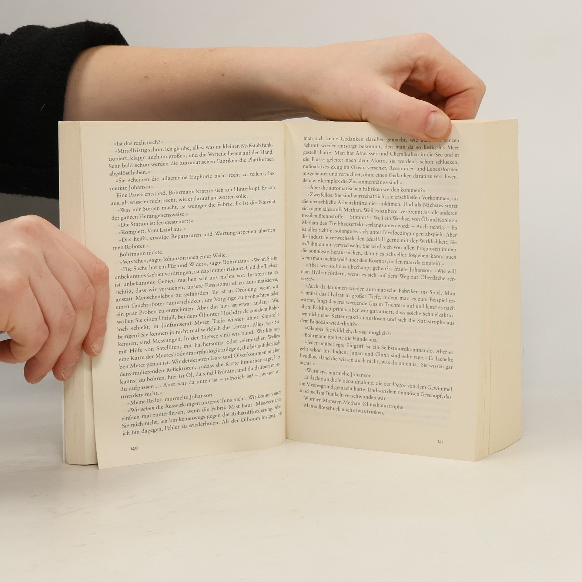 Irgentetwas ist anders in den Meeren. Schiffe verschwinden, Tiered verhalten sich anders... Habe erst das Hörspiel gehört, dann das Buch gelesen. Hat mir sehr gefallen. Teilweise etwas zuviel Agenten, aber alles andere sehr interessant. Schätzing hat die Idea aus einem Traum.