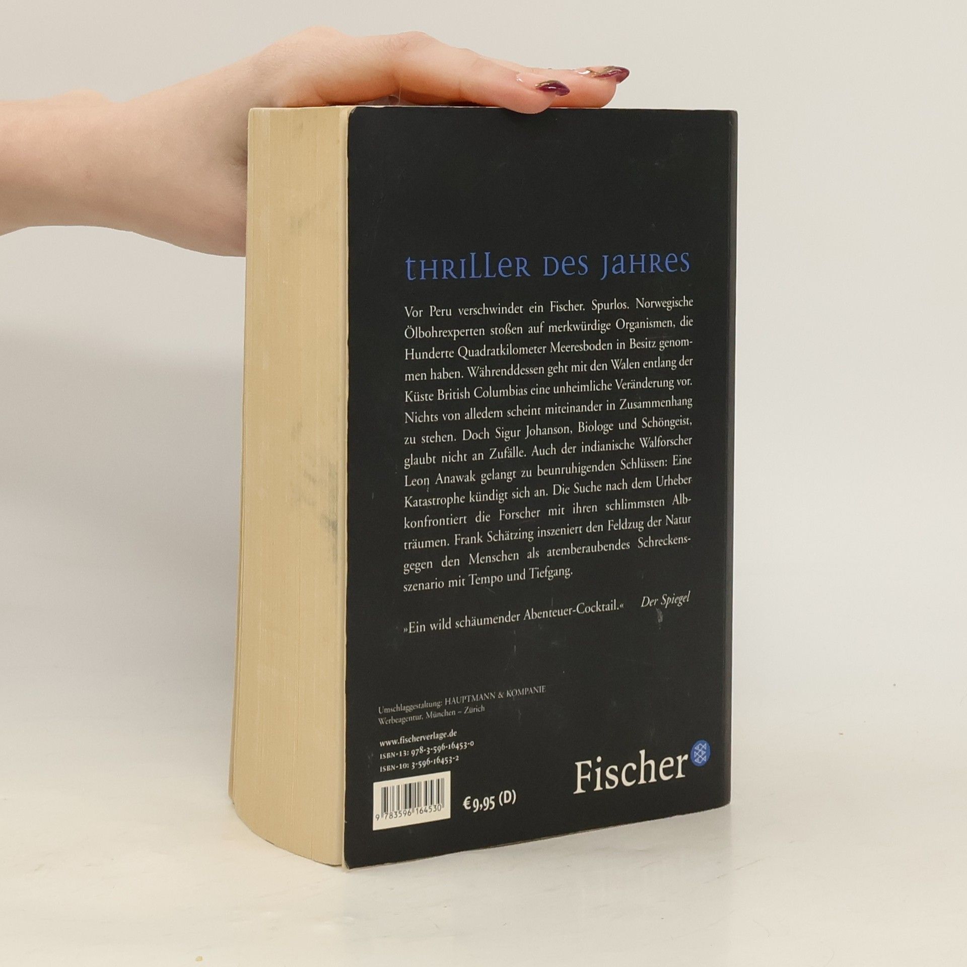 Vor Peru verschwindet ein Fischer. Spurlos. Norwegische Ölbohrexperten stoßen auf merkwürdige Organismen, die Hunderte Quadratkilometer Meeresboden in Besitz genommen haben. Währenddessen geht mit den Walen entlang der Küste British Columbias eine unheimliche Veränderung vor. Nichts von alledem scheint miteinander in Zusammenhang zu stehen. Doch Sigur Johanson, Biologe und Schöngeist, glaubt nicht an Zufälle. Auch der indianische Walforscher Leon Anawak gelangt zu beunruhigenden Schlüssen: Eine Katastrophe kündigt sich an. Die Suche nach dem Urheber konfrontiert die Forscher mit ihren schlimmsten Albträumen. Frank Schätzing inszeniert den Feldzug der Natur gegen den Menschen als atemberaubendes Schreckensszenario mit Tempo und Tiefgang.