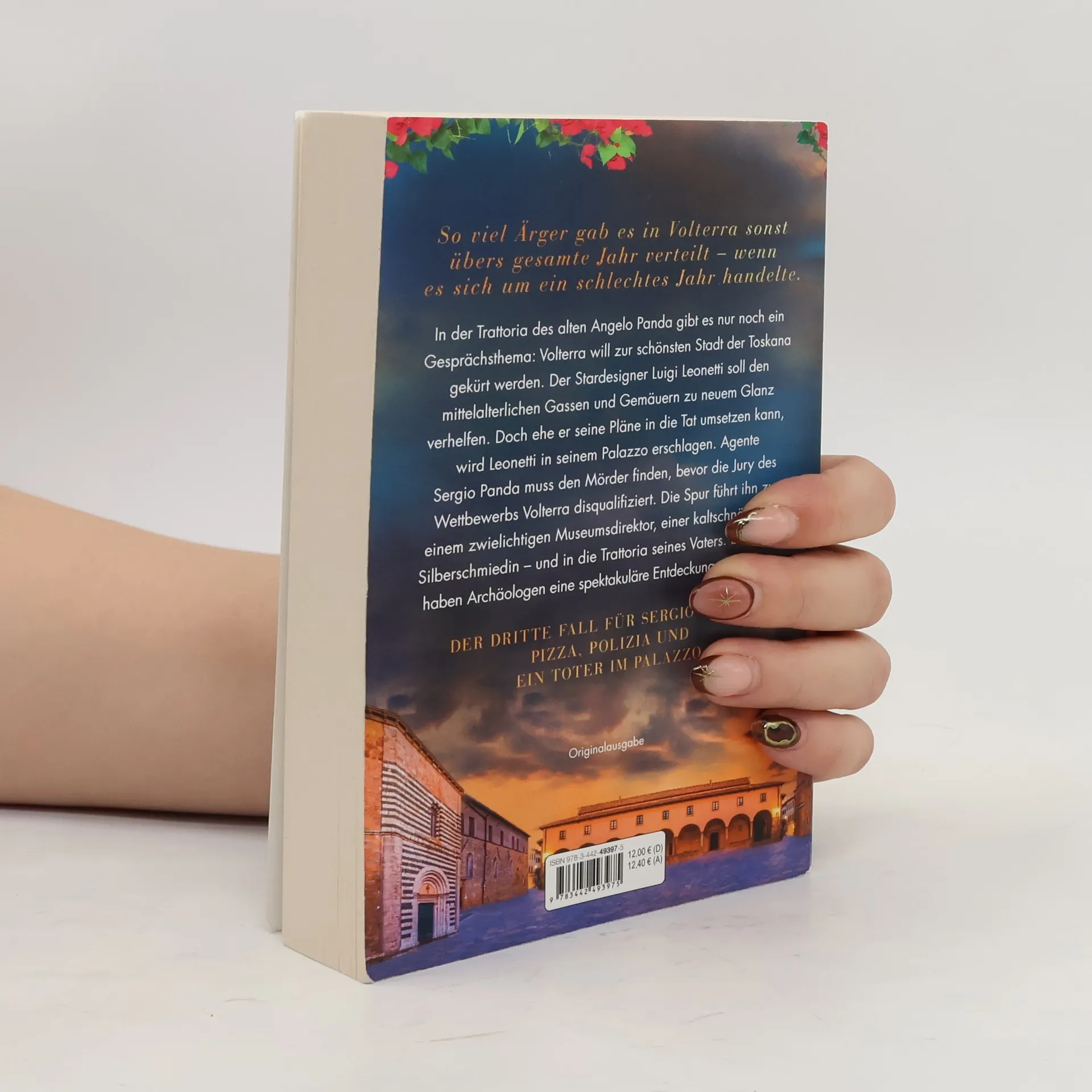 Der dritte Fall für Sergio Panda – Pizza, Polizia und ein Toter im Palazzo In der Trattoria des alten Angelo Panda gibt es nur noch ein Gesprächsthema: Volterra will zur schönsten Stadt der Toskana gekürt werden. Der Stardesigner Luigi Leonetti soll den mittelalterlichen Gassen und Gemäuern zu neuem Glanz verhelfen. Doch ehe er seine Pläne in die Tat umsetzen kann, wird Leonetti in seinem Palazzo erschlagen. Agente Sergio Panda muss den Mörder finden, bevor die Jury des Wettbewerbs Volterra disqualifiziert. Die Spur führt ihn zu einem zwielichtigen Museumsdirektor, einer kaltschnäuzigen Silberschmiedin – und in die Trattoria seines Vaters. Denn dort haben Archäologen eine spektakuläre Entdeckung gemacht …