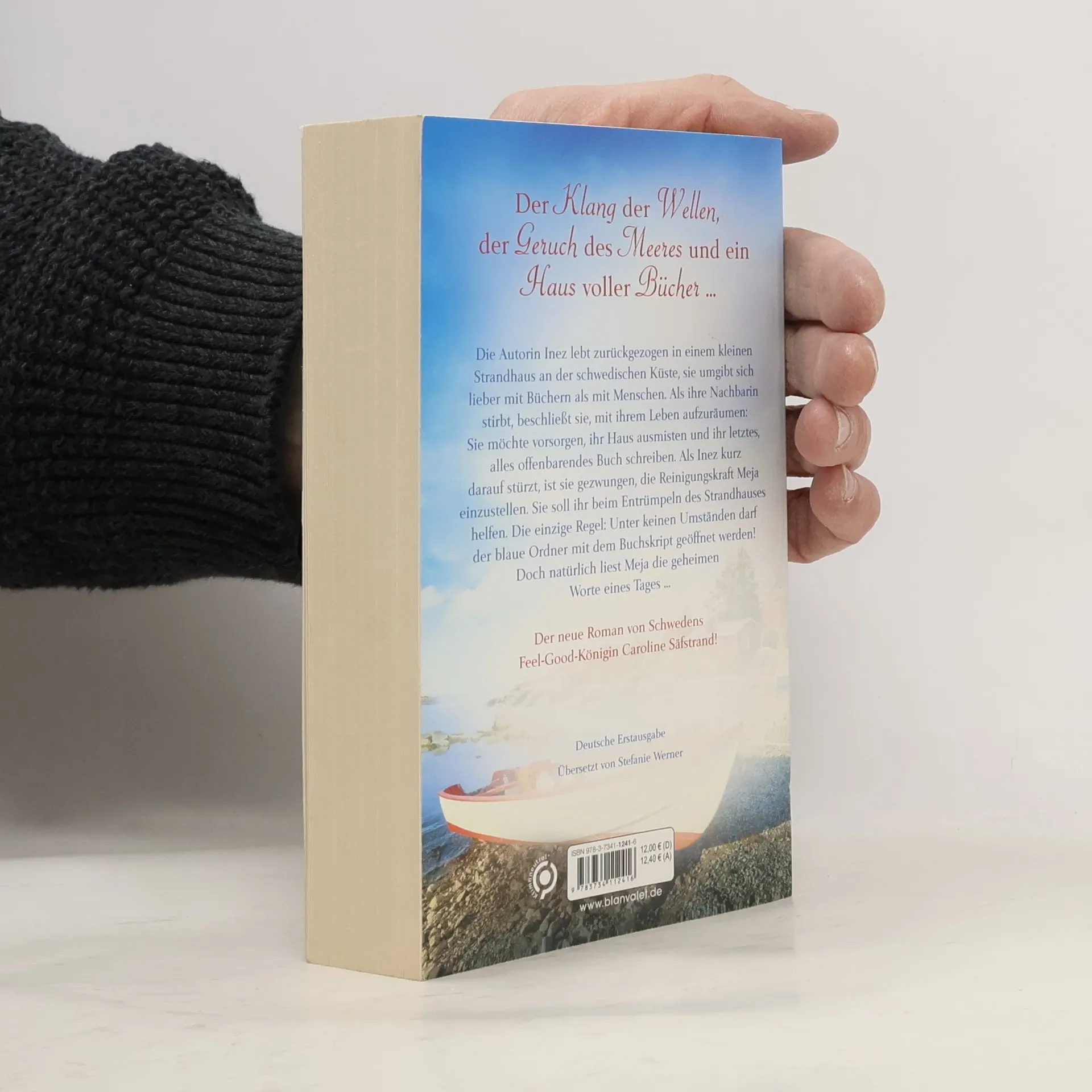 Der Klang der Wellen, der Geruch des Meeres und ein Haus voller Bücher – der neue Roman von Schwedens Feel-Good-Königin Caroline Säfstrand! Die Autorin Inez lebt zurückgezogen in einem kleinen Strandhaus an der schwedischen Küste, sie umgibt sich lieber mit Büchern als mit Menschen. Als ihre Nachbarin stirbt, beschließt sie, mit ihrem Leben aufzuräumen: Sie möchte vorsorgen, ihr Haus ausmisten und ihr letztes, alles offenbarendes Buch schreiben. Als Inez kurz darauf stürzt, ist sie gezwungen, das Dienstmädchen Meja einzustellen. Sie soll ihr beim Entrümpeln des Strandhauses helfen. Die einzige Regel: Unter keinen Umständen darf der blaue Ordner mit dem Buchskript geöffnet werden! Doch natürlich sieht Meja die geheimen Worte eines Tages … Das Treffen zwischen Inez, die im hohen Alter mit ihrer Vergangenheit versöhnt werden muss, und der hoffnungslosen Meja, die nach einer Zukunft sucht, hat für die beiden ungleichen Frauen unvorhergesehene Folgen … Lust auf noch mehr schwedische Wohlfühllektüre? Dann lesen Sie auch »Strandhotel Meeresbrise« von Caroline Säfstrand.