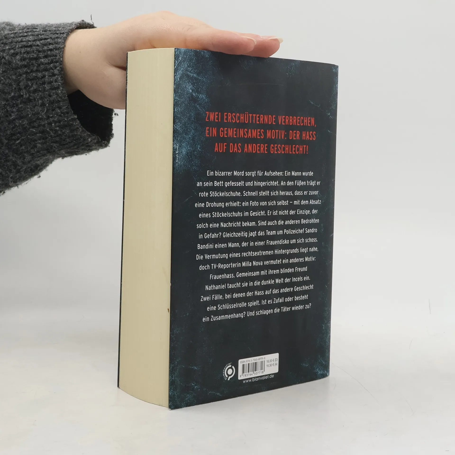 Ein bizarre Mordserie an Männern sowie Schüsse während einer Frauendisko – in Band 5 der Erfolgsserie halten gleich zwei Fälle Milla Nova und das Team um Sandro Bandini auf Trab. Ein bizarrer Mord sorgt für Aufsehen: Ein Mann wurde an sein Bett gefesselt und hingerichtet. An den Füßen trägt er rote Stöckelschuhe. Schnell stellt sich heraus, dass er zuvor eine Drohung erhielt: ein Foto von sich selbst – mit dem Absatz eines Stöckelschuhs im Gesicht. Er ist nicht der Einzige, der solch eine Nachricht bekam. Sind auch die anderen Bedrohten in Gefahr? Gleichzeitig jagt das Team um Polizeichef Sandro Bandini einen Mann, der in einer Frauendisko in einem linken Kulturzentrum um sich schoss. Die Vermutung eines rechtsextremen Hintergrunds liegt nahe, doch TV-Reporterin Milla Nova vermutet ein anderes Motiv: Frauenhass. Gemeinsam mit ihrem blinden Freund Nathaniel taucht sie in die dunkle Welt der Incels ein. Zwei Fälle, bei denen der Hass auf das andere Geschlecht eine vitale Rolle spielt. Ist es Zufall oder besteht ein Zusammenhang? Die unabhängig voneinander lesbaren Krimis um Milla Nova und Sandro Bandini: 1. Blind 2. Die Patientin 3. Der Bruder 4. Der Unbekannte 5. Der Feind Lesen Sie auch »Wahre Verbrechen»: Christine Brand schreibt über ihre dramatischsten Fälle als Gerichtsreporterin.