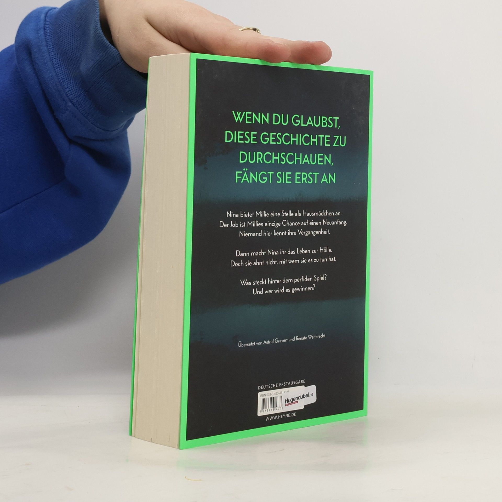 Wenn du glaubst, diese Geschichte zu durchschauen, fängt sie erst an Millie kann ihr Glück kaum fassen, als die elegante Nina ihr die Stelle als Haushaltshilfe inklusive Kost und Logis bei ihrer Familie auf Long Island anbietet. Schließlich hat sie eine Vergangenheit, von der niemand etwas wissen soll. Doch kaum ist Millie eingezogen, zeigt Nina ihr wahres Gesicht: Sie verwüstet das Haus und unterstellt ihr Dinge, die sie nicht getan hat. Ihre verwöhnte Tochter behandelt Millie ohne jeden Respekt. Nur Ninas attraktiver Mann Andrew ist nett zu ihr. Wäre da nur nicht Ninas wachsende Eifersucht. Hat sie Millie nur eingestellt, um ihr das Leben zur Hölle zu machen? Oder hat auch sie ein dunkles Geheimnis, von dem niemand etwas erfahren darf?