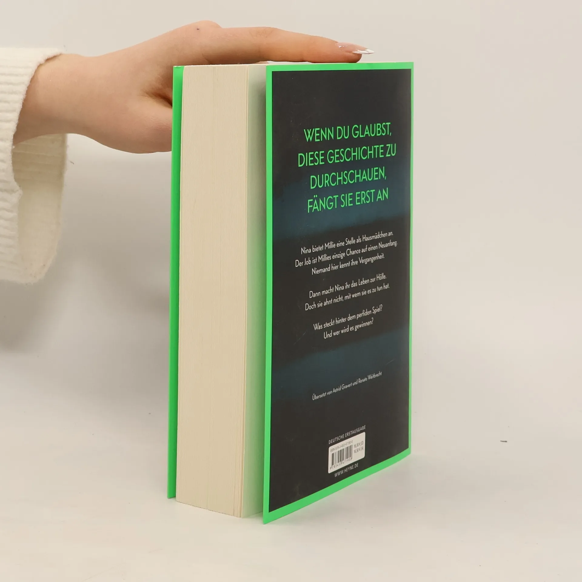 Wenn du glaubst, diese Geschichte zu durchschauen, fängt sie erst an Millie kann ihr Glück kaum fassen, als die elegante Nina ihr die Stelle als Haushaltshilfe inklusive Kost und Logis bei ihrer Familie auf Long Island anbietet. Schließlich hat sie eine Vergangenheit, von der niemand etwas wissen soll. Doch kaum ist Millie eingezogen, zeigt Nina ihr wahres Gesicht: Sie verwüstet das Haus und unterstellt ihr Dinge, die sie nicht getan hat. Ihre verwöhnte Tochter behandelt Millie ohne jeden Respekt. Nur Ninas attraktiver Mann Andrew ist nett zu ihr. Wäre da nur nicht Ninas wachsende Eifersucht. Hat sie Millie nur eingestellt, um ihr das Leben zur Hölle zu machen? Oder hat auch sie ein dunkles Geheimnis, von dem niemand etwas erfahren darf?