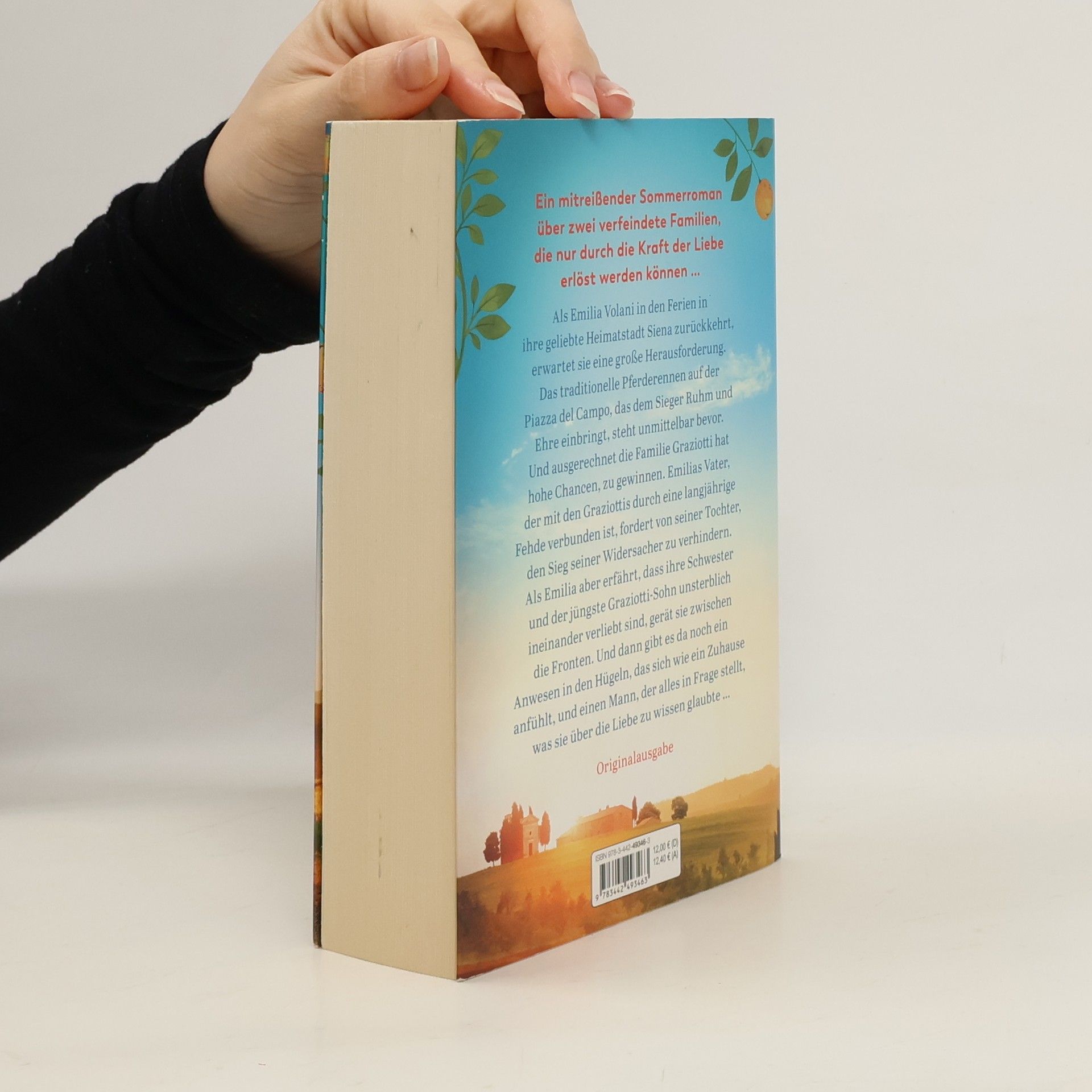 Als Emilia Volani in den Ferien in ihre geliebte Heimatstadt Siena zurückkehrt, erwartet sie eine große Herausforderung. Das traditionelle Pferderennen auf der Piazza del Campo, das dem Sieger Ruhm und Ehre einbringt, steht unmittelbar bevor. Und ausgerechnet die Familie Graziotti hat hohe Chancen, zu gewinnen. Emilias Vater, der mit den Graziottis durch eine langjährige Fehde verbunden ist, fordert von seiner Tochter, den Sieg seiner Widersacher zu verhindern. Als Emilia aber erfährt, dass ihre Schwester und der jüngste Graziotti-Sohn unsterblich ineinander verliebt sind, gerät sie zwischen die Fronten. Und dann sind da noch eine kleine Stute, die ihr Herz berührt, ein Anwesen in den Hügeln, das sich wie ein Zuhause anfühlt, und ein Mann, der alles in Frage stellt, was sie über die Liebe zu wissen glaubte …