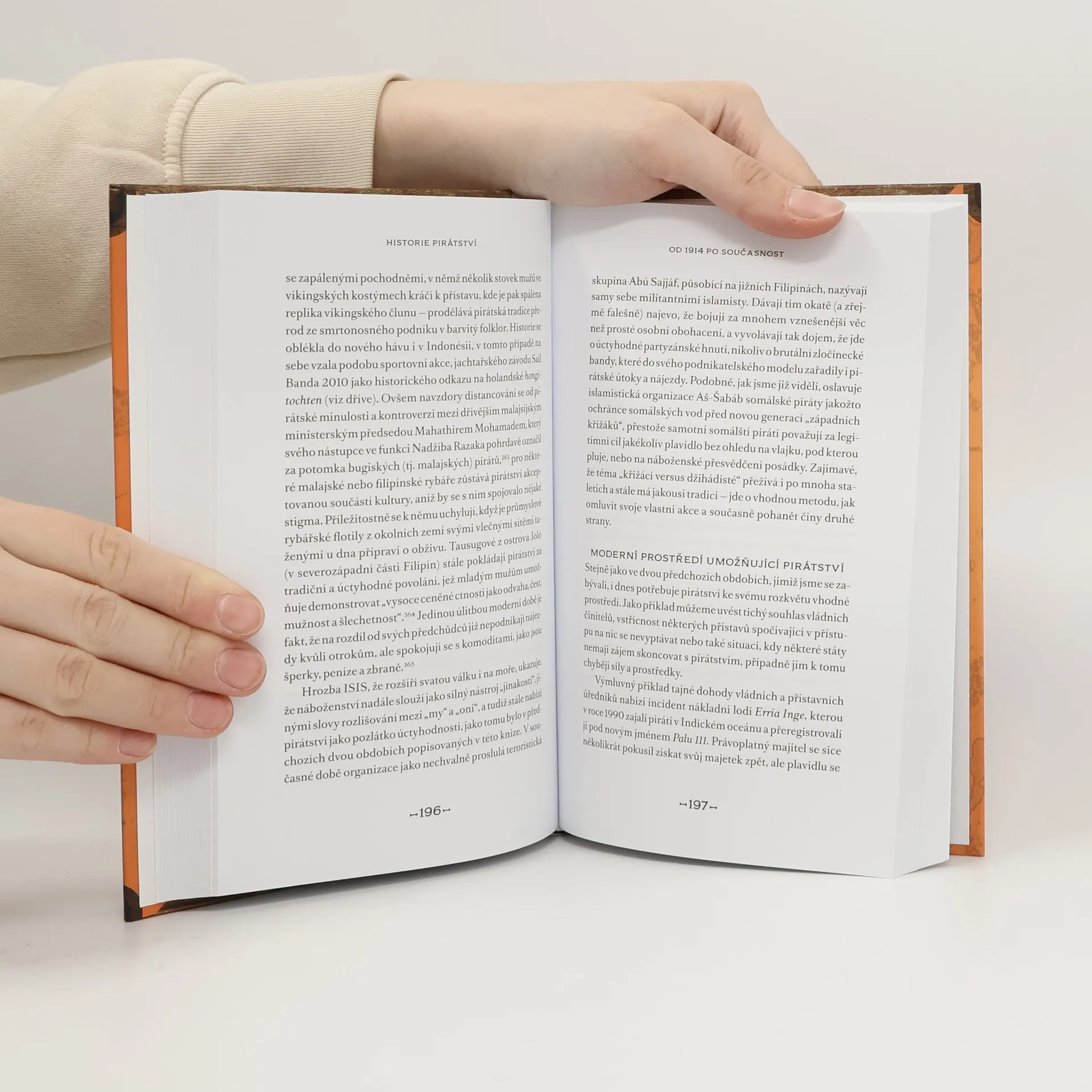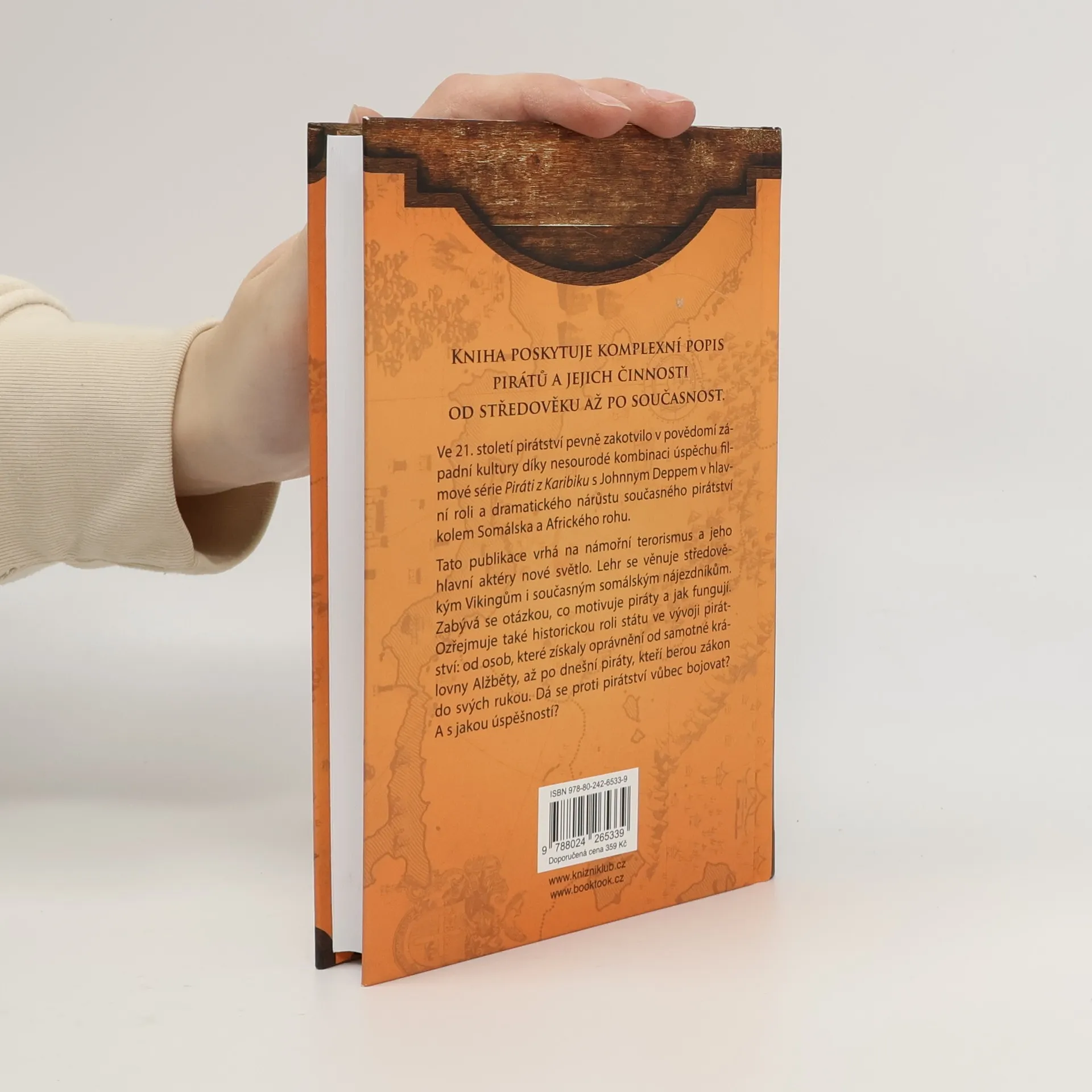 Nová historie pirátství, od Vikingů po somálské nájezdníky. Dozvíte se o původu pirátství – jeho počátky sahají k době, kdy lidé poprvé začali využívat lodě. V současnosti je pirátství omezeno jen na některé lokality. Jsou popsány způsoby přepadávání lodí, přístavů nebo vesnic a měst na pobřeží. A jak se postupem času tyto strategie vyvíjely s příchodem nových technologií, politických spojenectví apod. Vyvrací se romantické představy o pirátech, které byly vytvořeny mnoha příběhy a hollywoodskými filmy. Nechybí ani portréty nejslavnějších pirátů. Pro přehlednost je kniha doplněna mapkami a kresbami lodí.