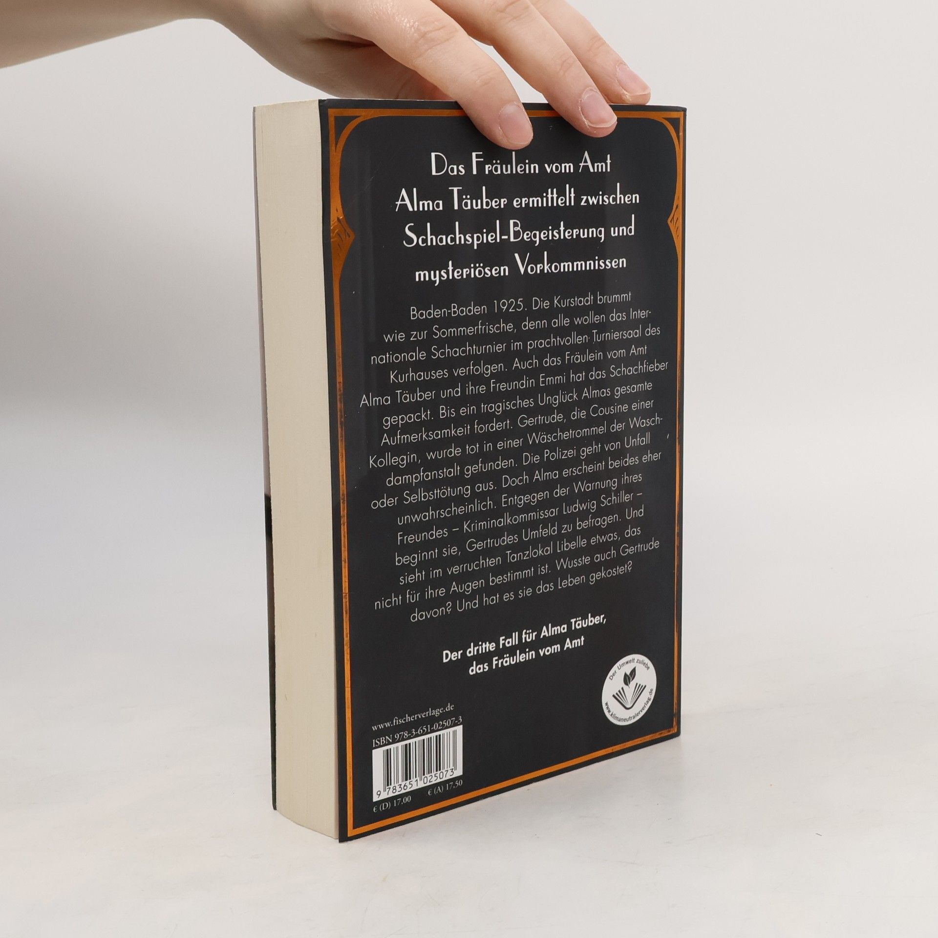 Alma Täuber ermittelt zwischen Schachspiel-Begeisterung und mysteriösen Vorkommnissen – der dritte Fall für das Fräulein vom Amt Baden-Baden 1925. Die Kurstadt wird von begeisterten Schach-Anhängern überrannt und brummt wie zur Sommerfrische. Alle wollen das Internationale Schachturnier im prachtvollen Turniersaal des Kurhauses verfolgen. Auch das Fräulein vom Amt Alma Täuber und ihre Freundin Emmi hat das Schachfieber gepackt. Bis ein tragisches Unglück Almas gesamte Aufmerksamkeit fordert. Gertrude, die Cousine einer Kollegin, wurde tot in einer Wäschetrommel der Waschdampfanstalt gefunden. Die Polizei geht von Unfall oder Selbsttötung aus. Doch Alma erscheint beides eher unwahrscheinlich. Entgegen der Warnung ihres Freundes – Kriminalkommissar Ludwig Schiller – beginnt sie, Gertrudes Umfeld zu befragen. Und sieht im verruchten Tanzlokal Libelle etwas, das nicht für ihre Augen bestimmt ist. Wusste auch Gertrude davon? Und hat sie das das Leben gekostet?