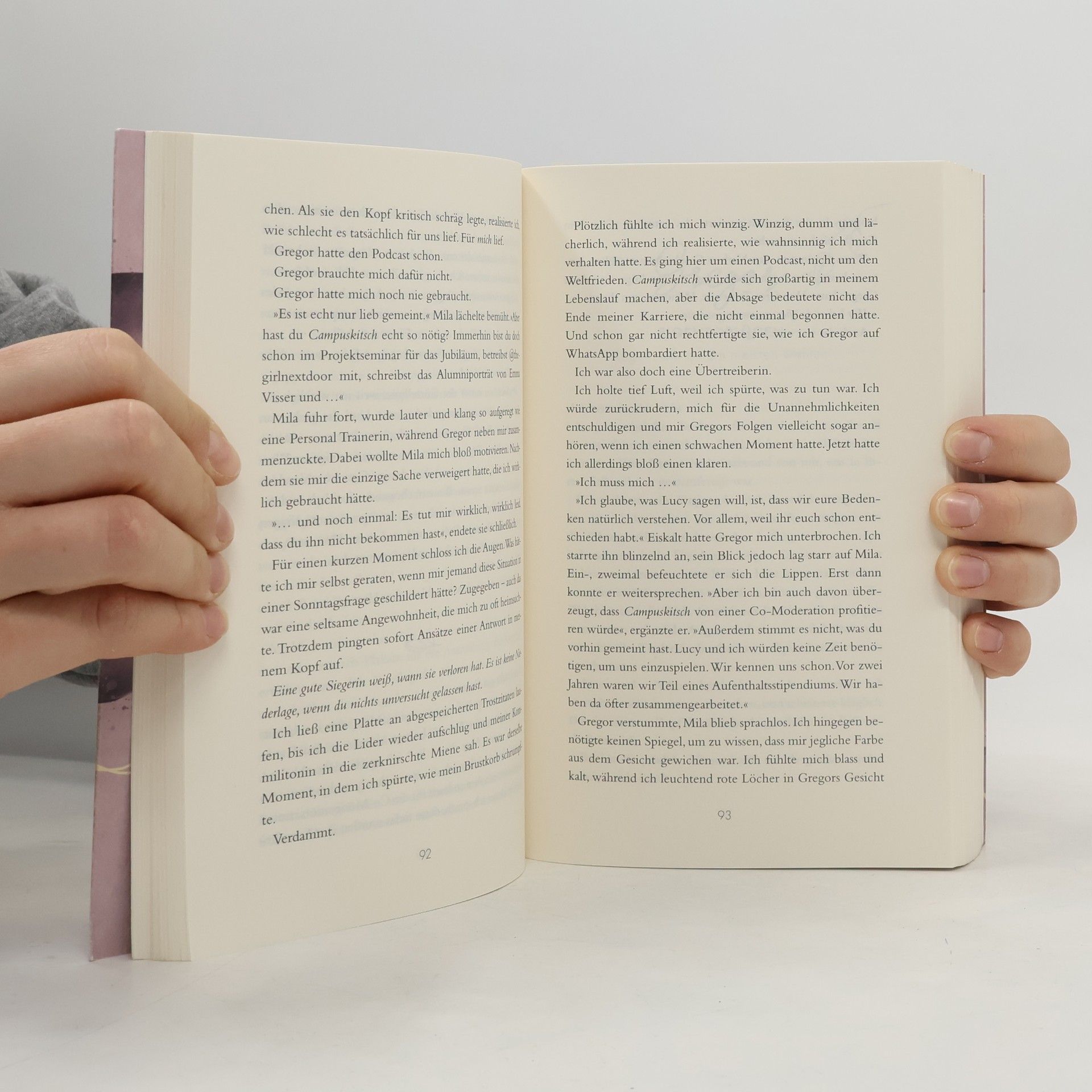 Das Buch ist bei deiner Buchhandlung vor Ort und bei vielen Online-Buchshops erhältlich! „Vielleicht musste Liebe nicht brandneu und besonders sein. Vielleicht musste sie einfach nur echt sein.“ Berlin, zwei Jahre zuvor: Lucy lernt Gregor bei einem Schreibworkshop kennen, und seine Worte berühren ihr Herz. Doch nach dem Sommer bleibt er spurlos verschwunden. Jetzt, in Köln, steht Gregor plötzlich wieder vor ihr. Er hat für seinen Master in die Stadt gezogen und teilt sich mit Lucy die Moderation des Hochschulpodcasts. Alte Erinnerungen kommen hoch, und die Frage bleibt: Warum ist Gregor zurückgekehrt? „Willst du, dass ich nur deswegen bleibe?“ Fragen wie diese vermeidet Lucy normalerweise, doch jetzt hat sie es ausgesprochen und bereut es nicht. Gregor zögert nicht, seine Gefühle zu offenbaren: „Ich will, dass du bleibst, weil ich verfickt noch mal nichts mit dir vergessen möchte.“ In dieser New Adult-Trilogie beleuchtet die SPIEGEL-Bestsellerautorin Gabriella Santos de Lima toxische (Nicht-)Beziehungen, Leistungsdruck und die Bedeutung offener Kommunikation – sei es in einem Podcast oder in der Liebe. Sie fängt die Lebenswelt junger Erwachsener in Zeiten von TikTok ein und erzählt eine wunderbare Liebesgeschichte über Liebe auf den zweiten Blick. Klimaneutrales Produkt – Wir unterstützen ausgewählte Klimaprojekte!