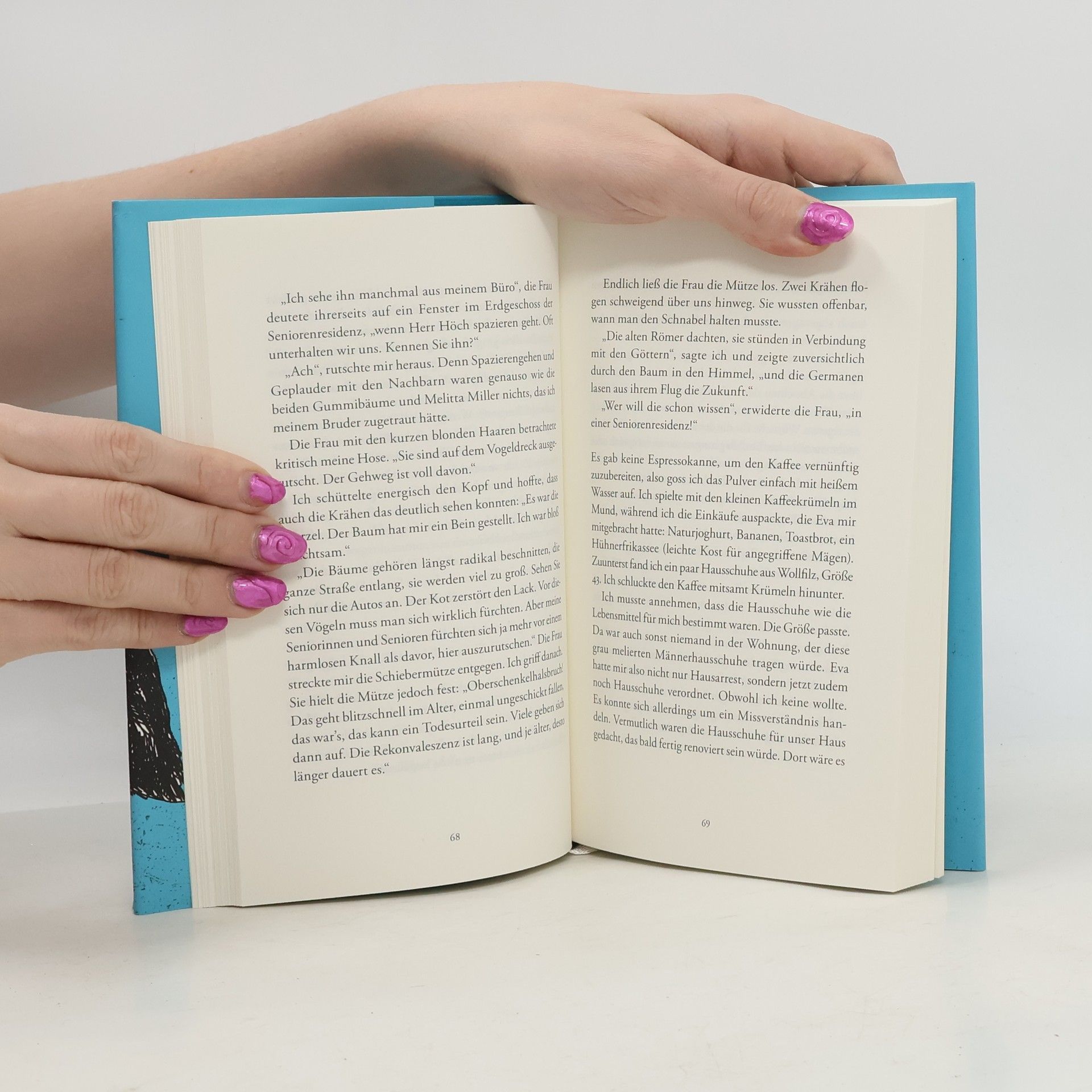 Jeden Tag versammeln sich mehr Krähen draußen in der Platane. Sollte Alexander Höch, der gerade eine Chemotherapie hinter sich hat, misstrauisch werden? Vielleicht auch, weil seine Frau Eva ihn ausgerechnet jetzt allein lässt? Doch bald entdeckt Höch seltsame Ähnlichkeiten zwischen sich und den Vögeln vor dem Fenster. Sehr zum Unmut von Melitta Miller, der Nachbarin, die zuweilen nach dem Rekonvaleszenten sieht und die mit ihrer Krähenabwehr immer radikalere Mittel findet, um die gefiederten Zuwanderer aus der Straße zu vertreiben. Soghaft und mit abgründiger Komik erzählt Kleine Schule des Fliegens von den realen und surrealen Provokationen des Lebens sowie von Leidenschaften, die einem den Boden unter den Füßen wegziehen. Gut, wer nun fliegen kann oder die richtigen Verbündeten hat!