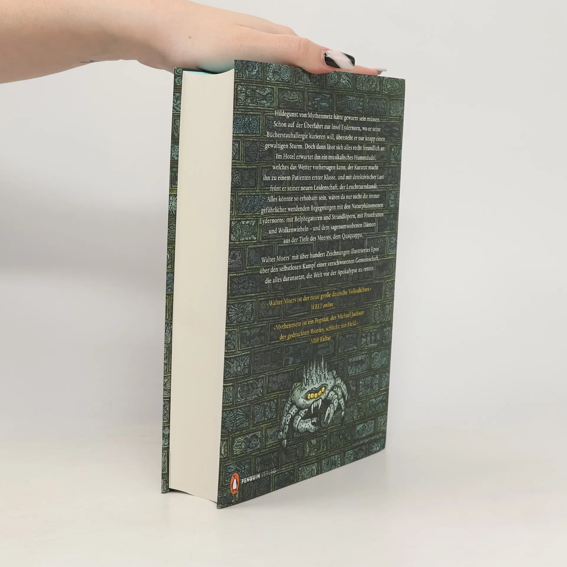 Hildegunst von Mythenmetz sollte gewarnt sein. Auf der Überfahrt zur Insel Eydernorn, wo er seine Bücherstauballergie heilen möchte, entgeht er nur knapp dem Tod. Im Hotel trifft er auf ein musikalisches Hummdudel, das ihm den Status eines Patienten erster Klasse verleiht, während hilfreiche Küstengnome ihre Dienste anbieten. Neugierig erkundet er die bizarre Fauna und Flora der Insel und widmet sich den hundertelf Leuchttürmen, die nachts funkeln wie tausend Sterne. Doch die Erholung wird durch bedrohliche Begegnungen mit der Natur Eydernorns getrübt: hungrige Belphegatoren, aufdringliche Strandlöper, monströse Frostfratten, schaurige Wolkenspinnen und der gefährlichste Dämon des zamonischen Ozeans, der Quaquappa. Mit über 100 Zeichnungen illustriert, erzählt das Epos von einem selbstlosen Kampf einer Gemeinschaft, die Zamonien vor der Apokalypse retten will, während Hildegunst als ungewollter Held dem gnadenlosen Schicksal ausgeliefert ist. Wie in jedem Zamonienroman wird eine in sich geschlossene Geschichte erzählt, die Neueinsteigern unterhaltsam den Zugang zum Moers'schen Kosmos eröffnet.