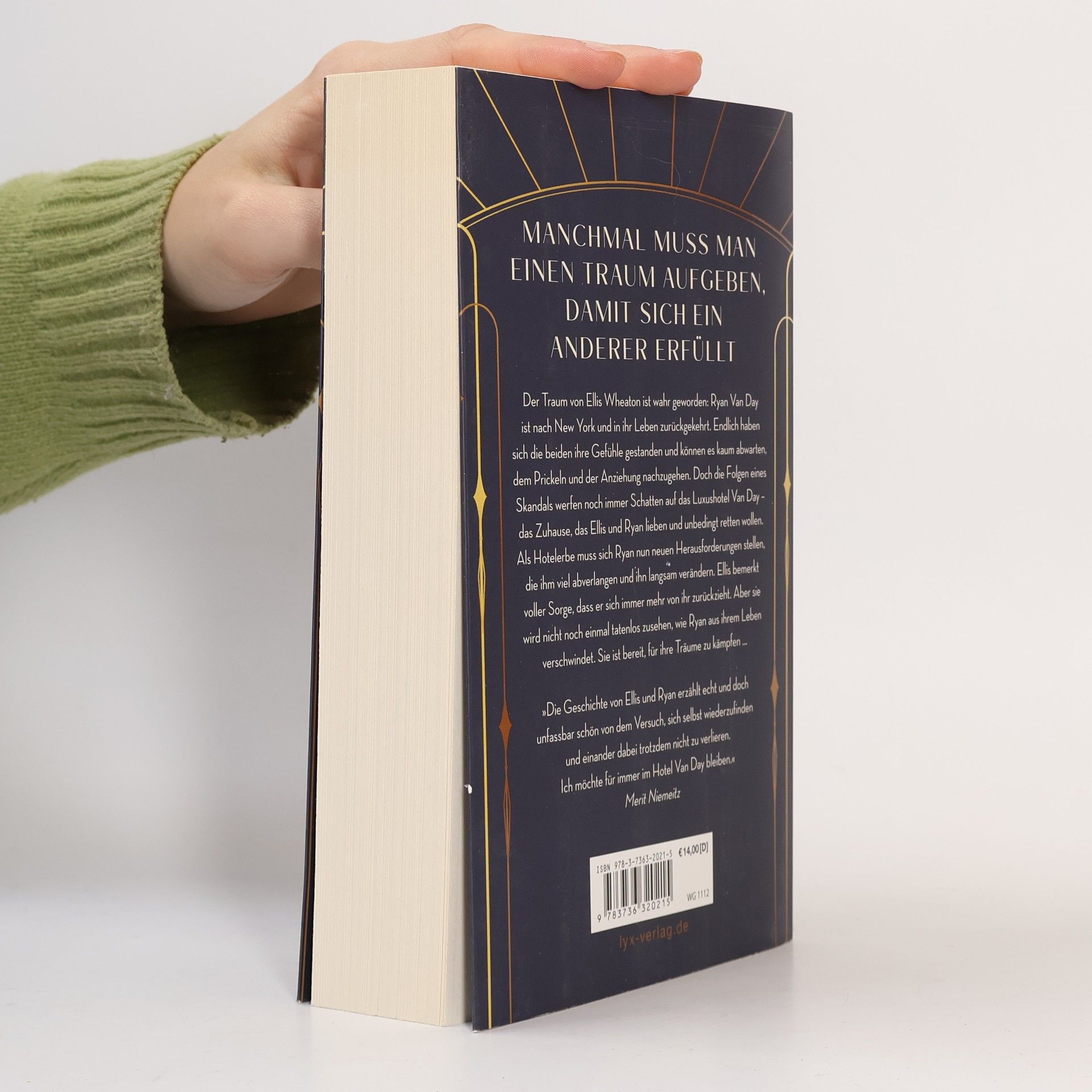 Manchmal muss man einen Traum aufgeben, damit sich ein anderer erfüllt Der Traum von Ellis Wheaton ist wahr geworden: Ryan Van Day ist nach New York und in ihr Leben zurückgekehrt. Endlich haben sich die beiden ihre Gefühle gestanden und können es kaum abwarten, dem Prickeln und der Anziehung nachzugehen. Doch die Folgen eines Skandals werfen noch immer Schatten auf das Luxushotel Van Day - das Zuhause, das Ellis und Ryan lieben und unbedingt retten wollen. Als Hotelerbe muss sich Ryan nun neuen Herausforderungen stellen, die ihm viel abverlangen und ihn langsam verändern. Ellis bemerkt voller Sorge, dass er sich immer mehr von ihr zurückzieht. Aber sie wird nicht noch einmal tatenlos zusehen, wie Ryan aus ihrem Leben verschwindet. Sie ist bereit, für ihre Träume zu kämpfen ... »Die Geschichte von Ellis und Ryan erzählt echt und doch unfassbar schön von dem Versuch, sich selbst wiederzufinden und einander dabei trotzdem nicht zu verlieren. Ich möchte für immer im Hotel Van Day bleiben.« Merit Niemeitz Abschlussband der VAN-DAY -Dilogie