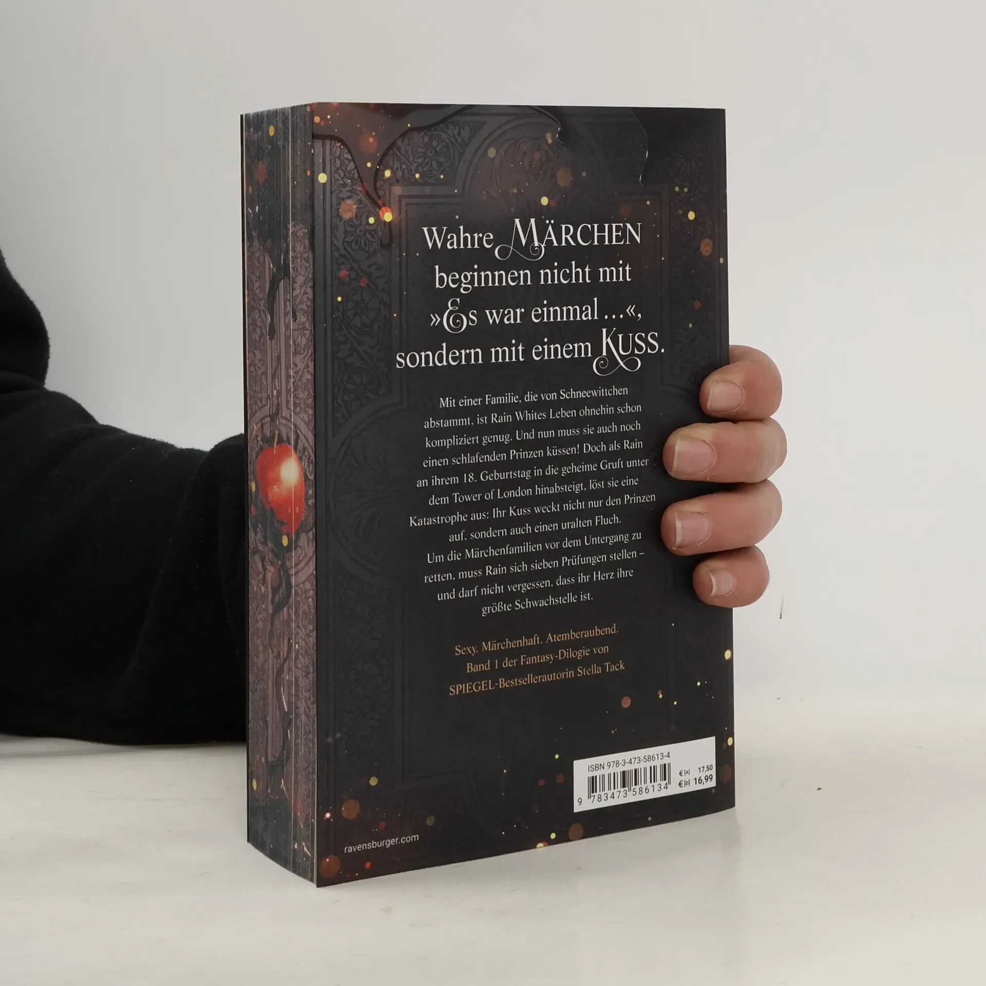 Mit einer Familie, die von Schneewittchen abstammt, ist Rain Whites Leben schon kompliziert genug. Nun muss sie auch noch einen schlafenden Prinzen küssen! Doch als Rain an ihrem 18. Geburtstag in die Gruft unter dem Tower of London hinabsteigt, löst sie eine Katastrophe aus: Ihr Kuss weckt nicht nur den Prinzen auf, sondern auch einen uralten Fluch. Um die Märchenfamilien zu retten, muss Rain sich sieben Prüfungen stellen – und darf nicht vergessen, dass ihr Herz ihre größte Schwachstelle ist. Weitere unvergessliche Romance und spannende Romantasy von SPIEGEL-Bestsellerautorin Stella Tack: Kiss the Bodyguard: Bd. 1: Kiss Me Once Bd. 2: Kiss Me Twice Bd. 3: Kiss Me Now Night of of Crowns: Bd. 1: Spiel um dein Schicksal Bd. 2: Kämpf um dein Herz