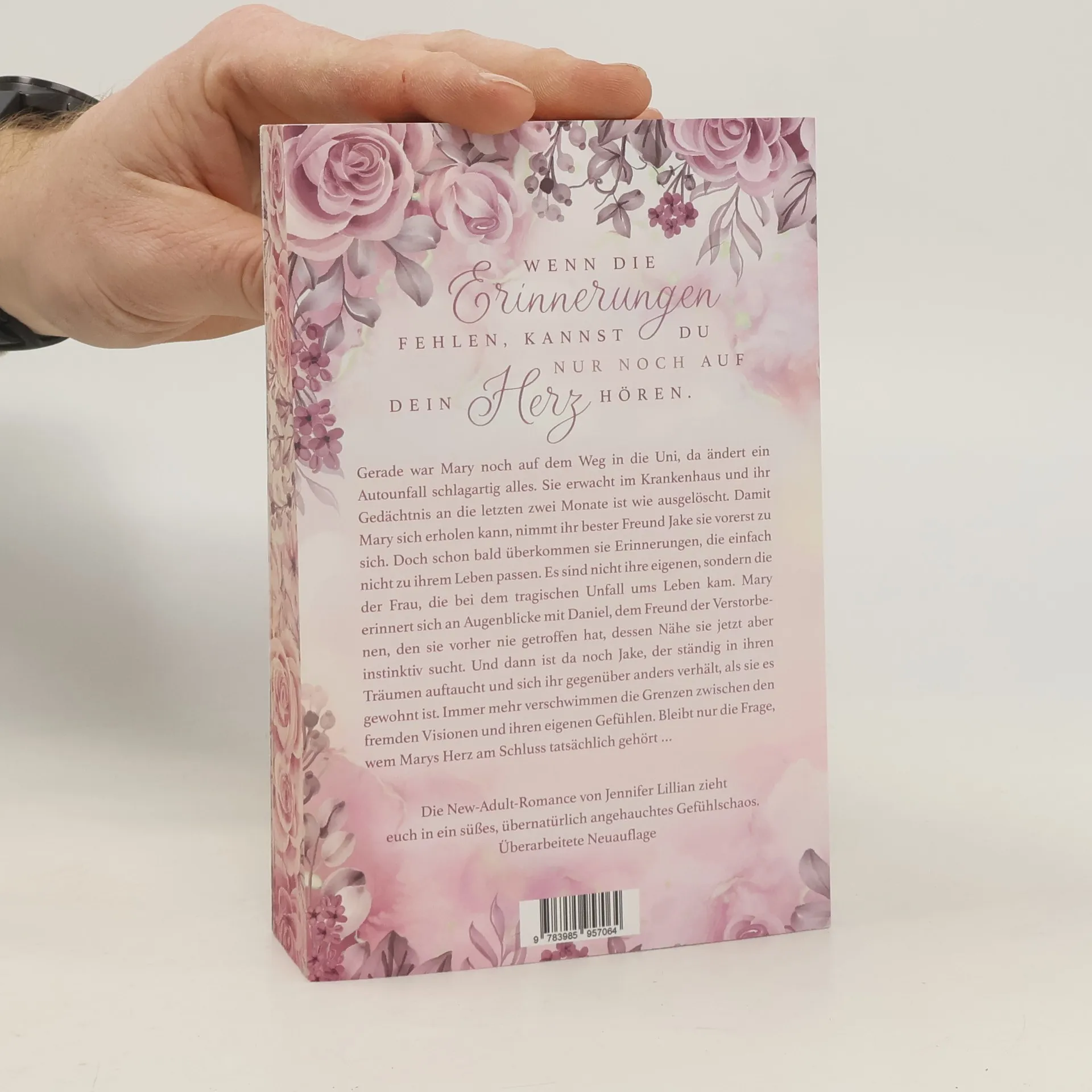 Wenn die Erinnerungen fehlen, kannst du nur noch auf dein Herz hören. Gerade war Mary noch auf dem Weg in die Uni, da ändert ein Autounfall schlagartig alles. Sie erwacht im Krankenhaus und ihr Gedächtnis an die letzten zwei Monate ist wie ausgelöscht. Damit Mary sich erholen kann, nimmt ihr bester Freund Jake sie vorerst zu sich. Doch schon bald überkommen sie Erinnerungen, die einfach nicht zu ihrem Leben passen. Es sind nicht ihre eigenen, sondern die der Frau, die bei dem tragischen Unfall ums Leben kam. Mary erinnert sich an Augenblicke mit Daniel, dem Freund der Verstorbenen, den sie vorher nie getroffen hat, dessen Nähe sie jetzt aber instinktiv sucht. Und dann ist da noch Jake, der ständig in ihren Träumen auftaucht und sich ihr gegenüber anders verhält, als sie es gewohnt ist. Immer mehr verschwimmen die Grenzen zwischen den fremden Visionen und ihren eigenen Gefühlen. Bleibt nur die Frage, wem Marys Herz am Schluss tatsächlich gehört … Die New-Adult-Romance von Jennifer Lillian zieht euch in ein süßes, übernatürlich angehauchtes Gefühlschaos. Ein wunderschönes Happy End ist garantiert. Überarbeitete Neuauflage