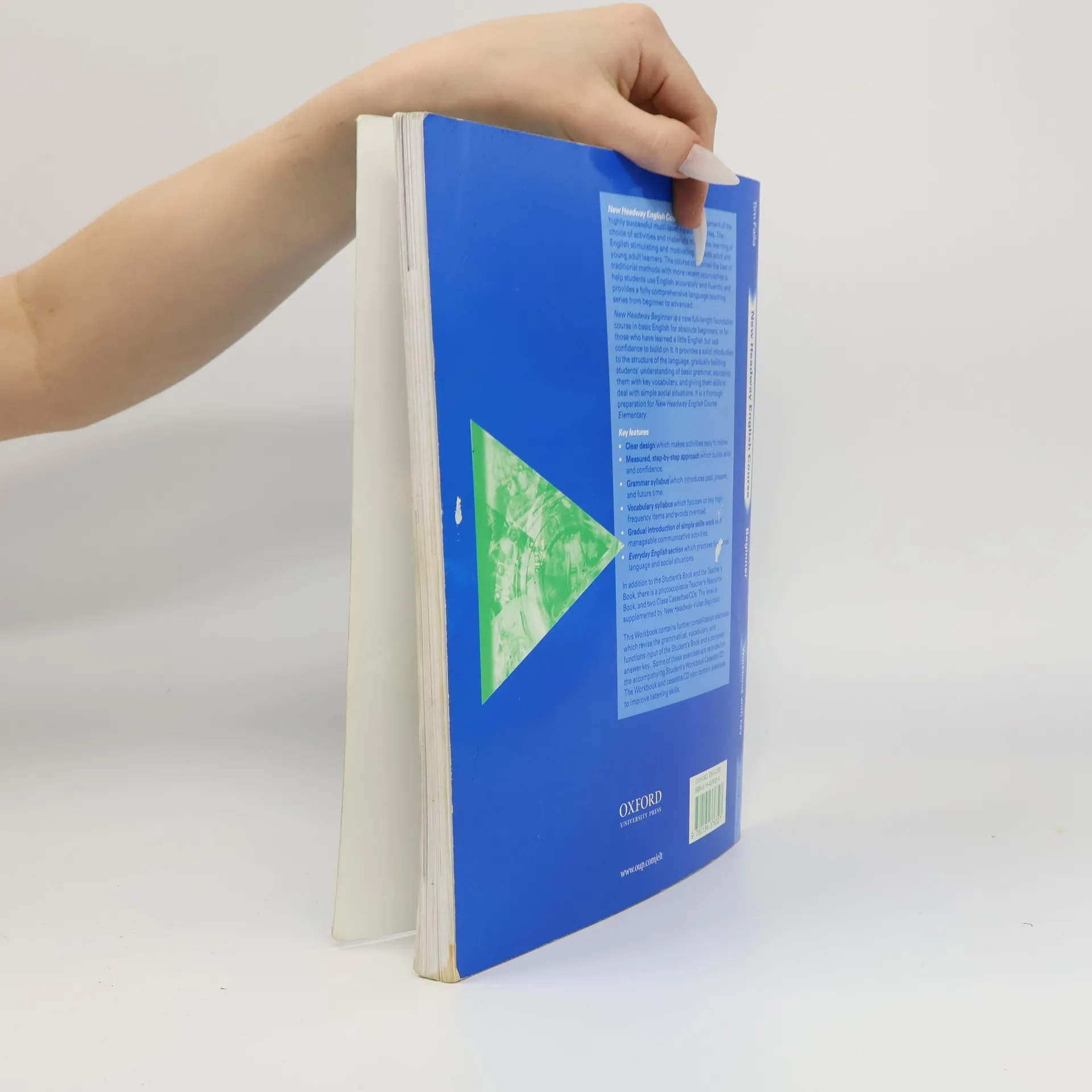 New Headway Beginner is aimed at absolute beginners, or those who have learned a little English but lack the confidence to build on it. It provides a solid foundation for New Headway Elementary. Its measured, step-by-step approach builds both skills and confidence. The right mix of language work and plentiful practice material enables learners to consolidate their knowledge of key points before proceeding further. The clearly defined grammatical syllabus includes past, present and future time and provides a thorough basis on which to build. The presentation of new language is gradual, methodical and clearly structured, giving learners a clear sense of progression. The vocabulary syllabus focuses on high-frequency survival terms and avoids overload. The gradual introduction of simple skills work with manageable communicative activities give learners a sense of achievement. 'Everyday English' practises social expressions in common situations and shows how learners can apply their knowledge in practical ways.