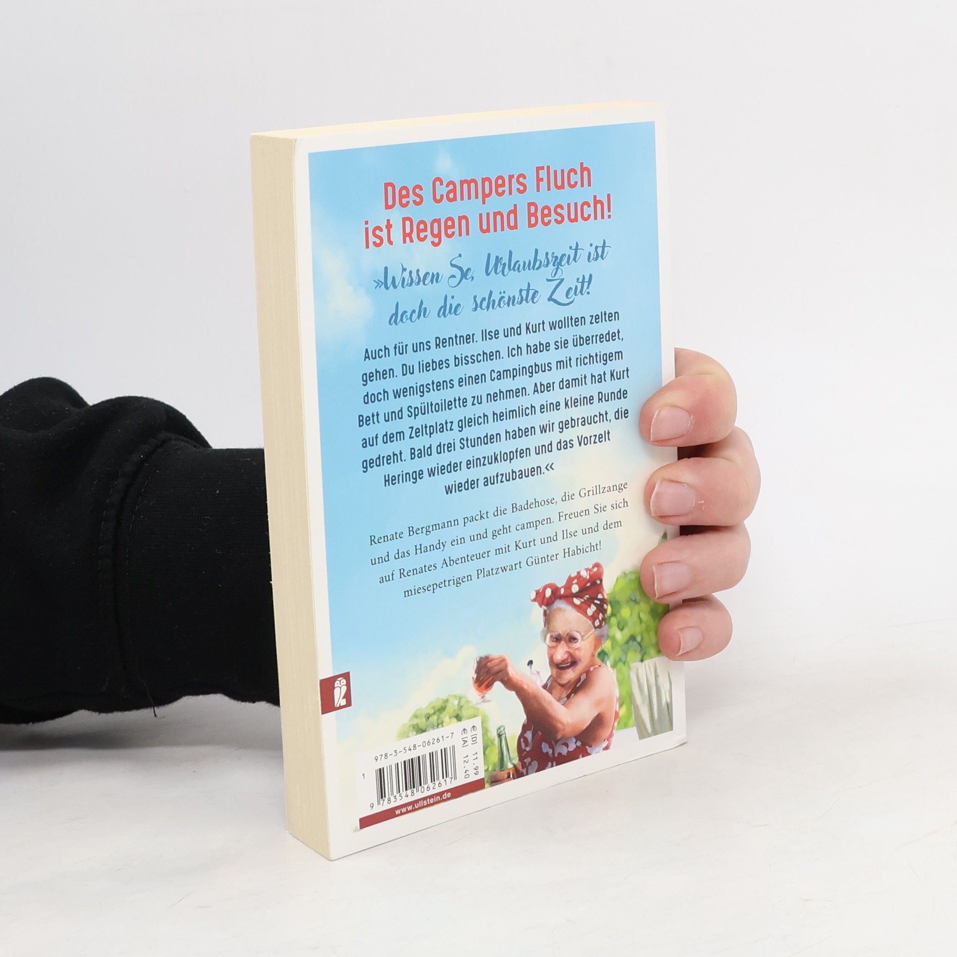 Des Campers Fluch ist Regen und Besuch! „Wissen Se, Urlaubszeit ist doch die schönste Zeit! Ich hör Sie schon sagen: Frau Bergmann, Sie als Rentnerin haben doch immer Urlaub!, aber das ist Unsinn: Wenn man sich wirklich erholen will, muss man mal raus. Ilse und Kurt wollten mit in die Sommerfrische, aber das war gar nicht so einfach, die wollten nämlich zelten. Du liebes bisschen. Ich habe sie überredet, doch wenigstens einen Campingbus mit richtigem Bett und Spültoilette zu nehmen. Aber damit hat Kurt auf dem Zeltplatz gleich heimlich eine kleine Runde gedreht. Bald drei Stunden haben wir gebraucht, die Heringe wieder einzuklopfen und das Vorzelt wieder aufzubauen.“ Renate Bergmann packt die Badehose, die Grillzange und das Handy ein und geht campen. Freuen Sie sich auf Renates Abenteuer mit Kurt und Ilse und dem miesepetrigen Platzwart Günter Habicht!
