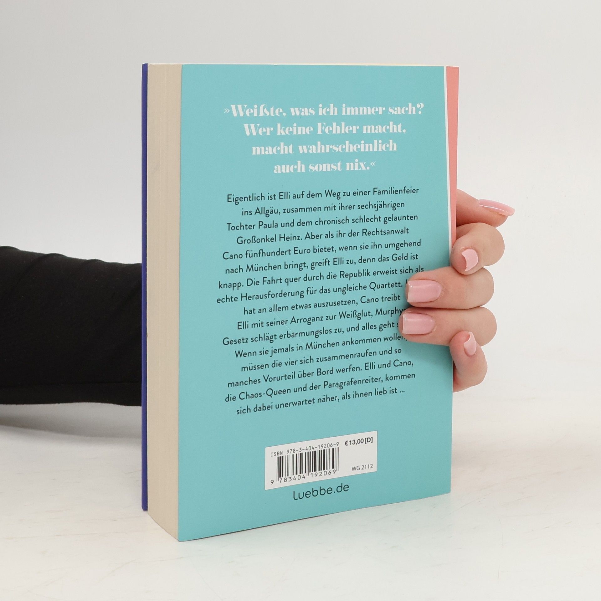 Eigentlich ist Elli auf dem Weg zu einer Familienfeier ins Allgäu, zusammen mit ihrer sechsjährigen Tochter Paula und dem chronisch schlecht gelaunten Großonkel Heinz. Aber als ihr der Rechtsanwalt Cano fünfhundert Euro bietet, wenn sie ihn umgehend nach München bringt, greift Elli zu, denn das Geld ist knapp. Die Fahrt quer durch die Republik erweist sich als echte Herausforderung für das ungleiche Quartett. Heinz hat an allem etwas auszusetzen, Cano treibt Elli mit seiner Arroganz zur Weißglut, Murphys Gesetz schlägt erbarmungslos zu, und alles geht schief. Wenn sie jemals in München ankommen wollen, müssen die vier sich zusammenraufen und so manches Vorurteil über Bord werfen. Elli und Cano, die Chaos-Queen und der Paragrafenreiter, kommen sich dabei unerwartet näher, als ihnen lieb ist ...