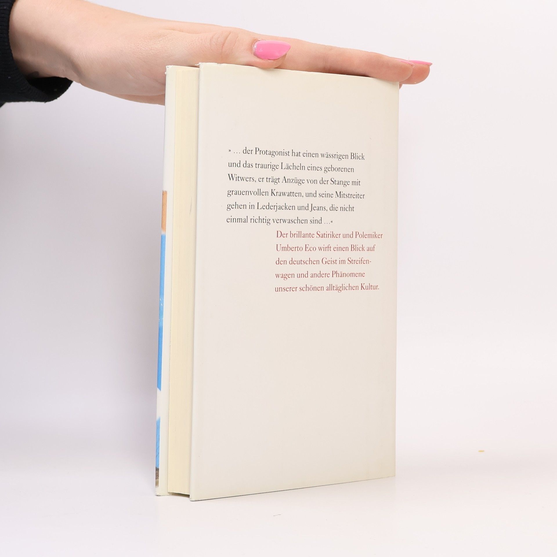 Gibt es etwas Deutscheres als Kommissar Derrick, die vollkommene Verkörperung von Durchschnittlichkeit, Phlegma und Beamtenkarriere? Phänomene wie den deutschen Geist im Streifenwagen, Ginger Rogers und Clintons Verfehlungen, Andreottis Mafiaprozess und die neue Computerkultur kann niemand besser erklären als Umberto Eco. Ein Band voll ironisch-intelligenter Parodien.
