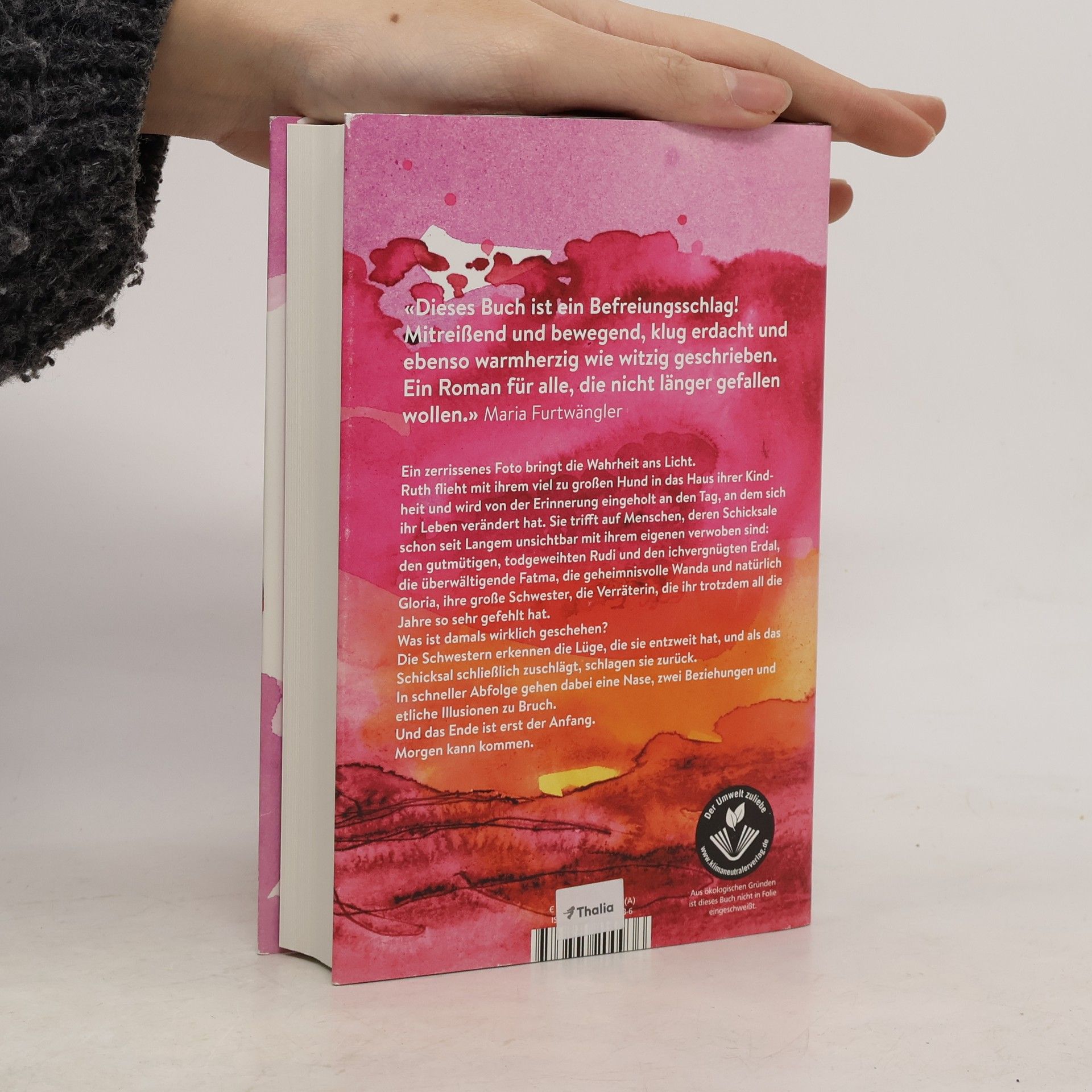 Der neue Roman von Ildikó von Kürthy ist mitreißend, warmherzig und witzig. Er erzählt von Frauen, die aus dem Schatten treten, destruktive Beziehungen beenden und das eigene Leben in die Hand nehmen. Ein zerrissenes Foto enthüllt einen Verrat, der vier Schicksale miteinander verbindet und sie mit den Herausforderungen der Lebensmitte konfrontiert: loslassen oder festhalten? Ruth flieht mit dem Foto und ihrem großen Hund in die alte Villa ihrer Großeltern. Dort trifft sie nach Jahren ihre Schwester, erkennt die Lüge, die sie entzweit, und das Verbrechen, das ihr Leben bestimmt hat. Sie öffnet ihr Herz für Rudi, der sich im ersten Stock auf seinen Tod vorbereitet, aber zuvor noch für Ordnung sorgen will. Zudem begegnet sie Erdal, der unter Wechseljahresbeschwerden leidet und versehentlich eine folgenschwere Entscheidung trifft, als er seine Cousine einlädt. In rasanter Folge gehen Illusionen zu Bruch. Ruth tritt aus dem Schatten ihrer Vergangenheit, und das Ende ist eigentlich erst der Anfang. Dieses Buch ist ein Befreiungsschlag! Es ist bewegend, klug erdacht und lädt dazu ein, neue Wege zu wagen. Die Botschaft: Lasst es uns probieren! Aufbruch und Neubeginn stehen im Mittelpunkt, denn morgen kann kommen!