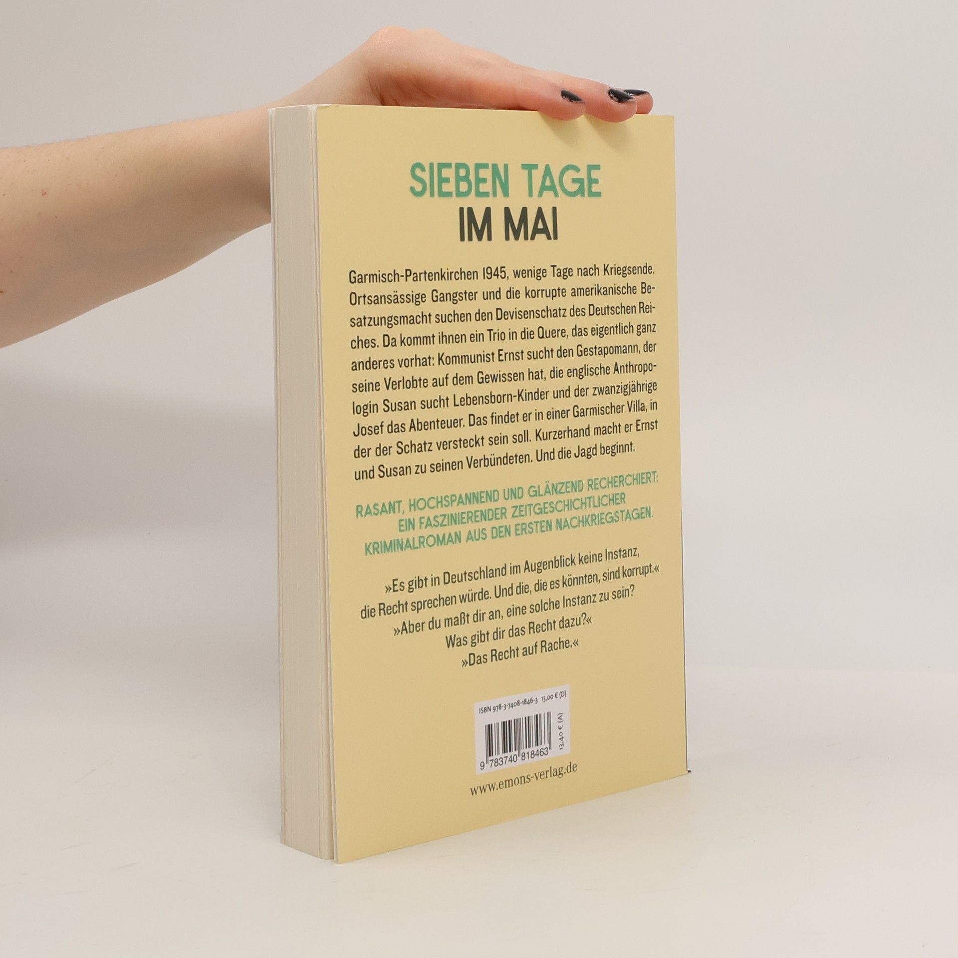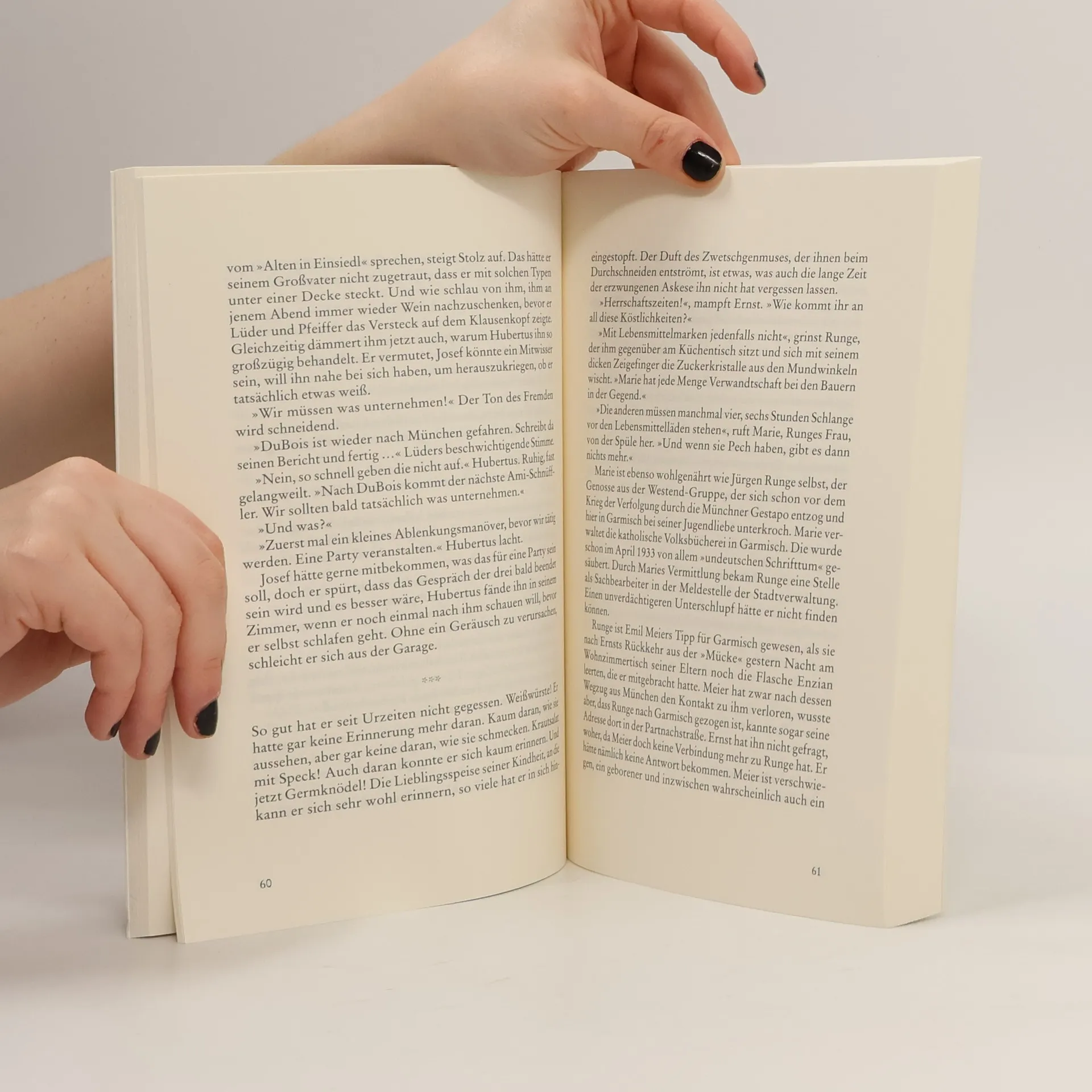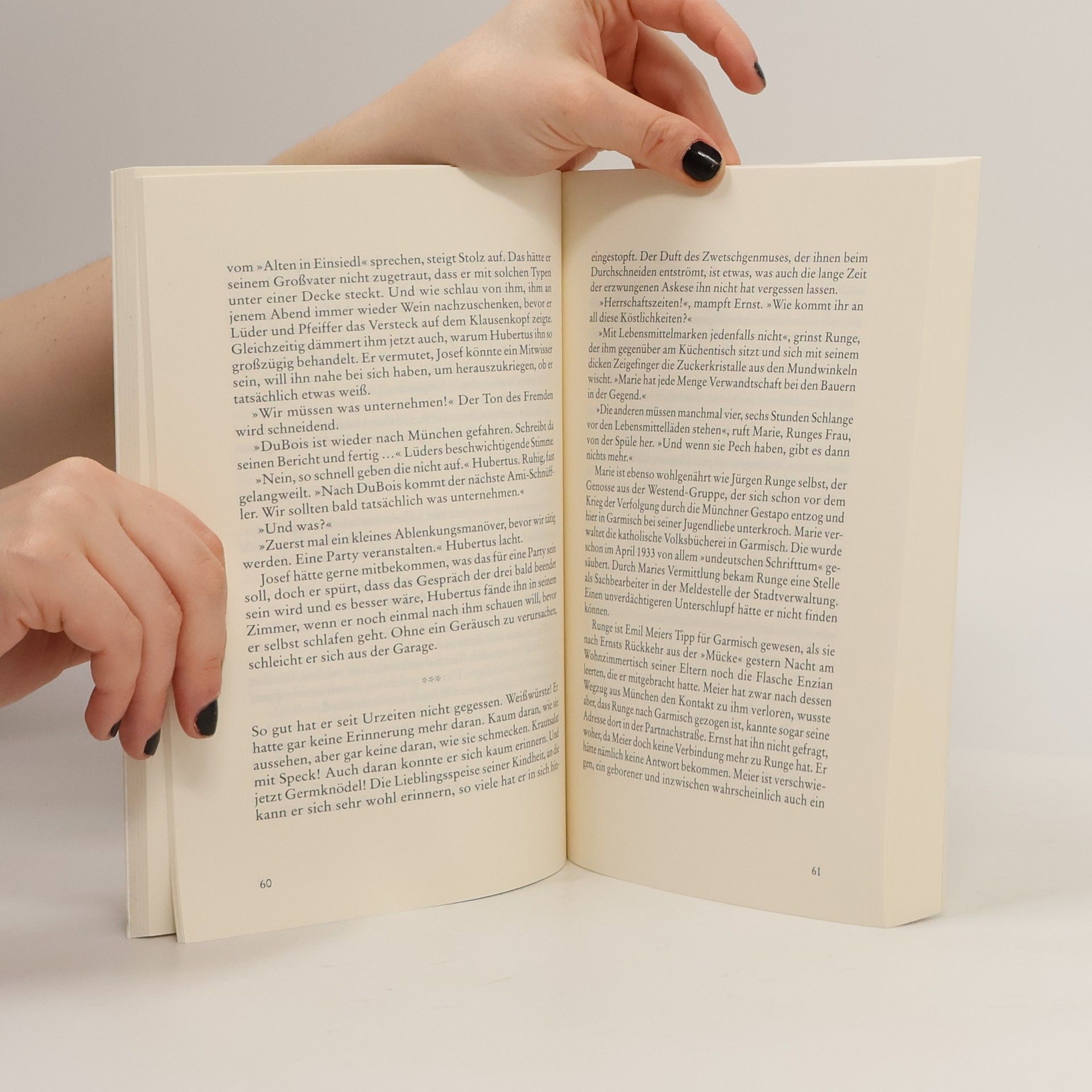 Ein Kriminalroman aus den ersten Nachkriegstagen, stimmungsvoll erzählt. Garmisch-Partenkirchen 1945, wenige Tage nach Kriegsende. Ortsansässige Gangster und die korrupte amerikanische Besatzungsmacht suchen den Devisenschatz des Deutschen Reiches. Da kommt ihnen ein Trio in die Quere, das eigentlich ganz anderes vorhat: Kommunist Ernst sucht den Gestapomann, der seine Verlobte auf dem Gewissen hat, die englische Anthropologin Susan sucht Lebensborn-Kinder und der zwanzigjährige Josef das Abenteuer. Das findet er in einer Garmischer Villa, in der der Schatz versteckt sein soll. Kurzerhand macht er Ernst und Susan zu seinen Verbündeten. Und die Jagd beginnt.