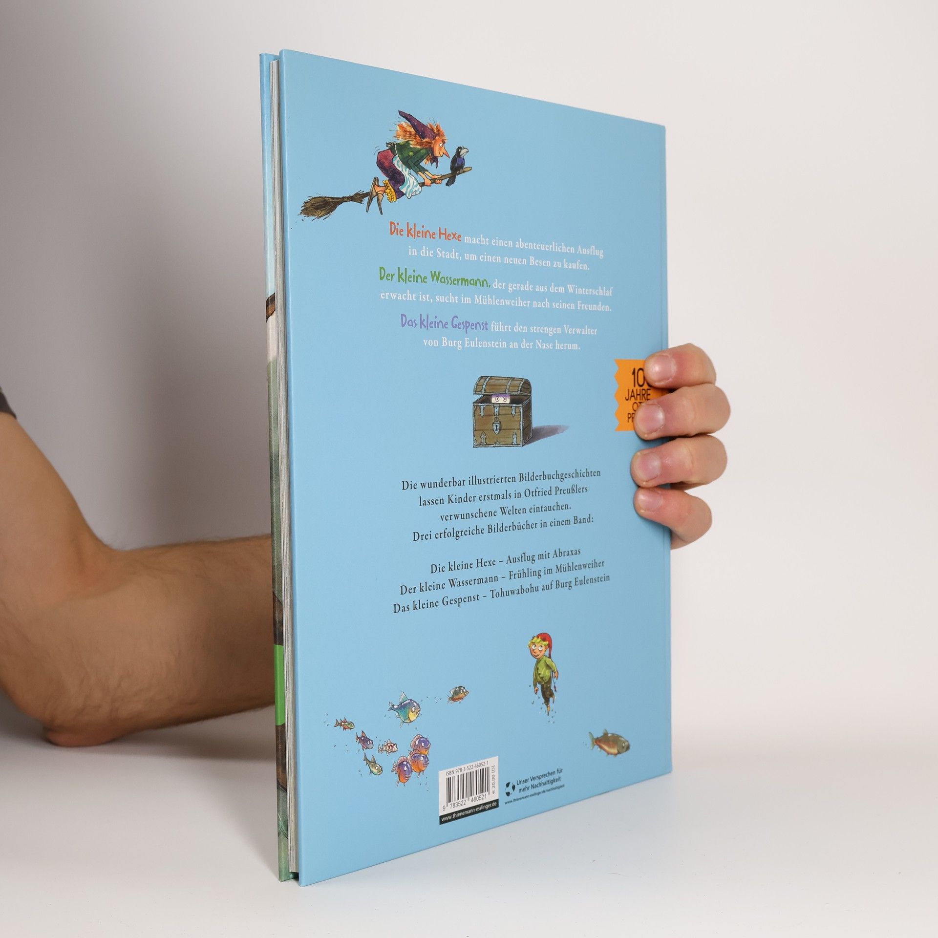 Die schönsten Bilderbücher der beliebten Kinderbuchhelden von Otfried Preußler. Für Kinder ab 4 Jahren geeignet. Erleben Sie die Abenteuer des kleinen Wassermanns, der kleinen Hexe und des kleinen Gespensts, drei der bekanntesten Kinderbuchhelden von Otfried Preußler, in einem einzigartigen Sammelband. Diese limitierte Sonderausgabe zum 100. Geburtstag des Autors bietet stimmungsvolle Illustrationen und behutsam bearbeitete Auszüge aus den Klassikern, die Kinder im Bilderbuchalter in die verwunschenen Welten von Otfried Preußler eintauchen lassen. Ein Muss für jede Bibliothek von kleinen Abenteurern. Drei erfolgreiche Bilderbücher in einem Band: Die kleine Hexe: Ausflug mit Abraxas Der kleine Wassermann: Frühling im Mühlenweieher Das kleine Gespenst: Tohuwabohu auf Burg Eulenstein