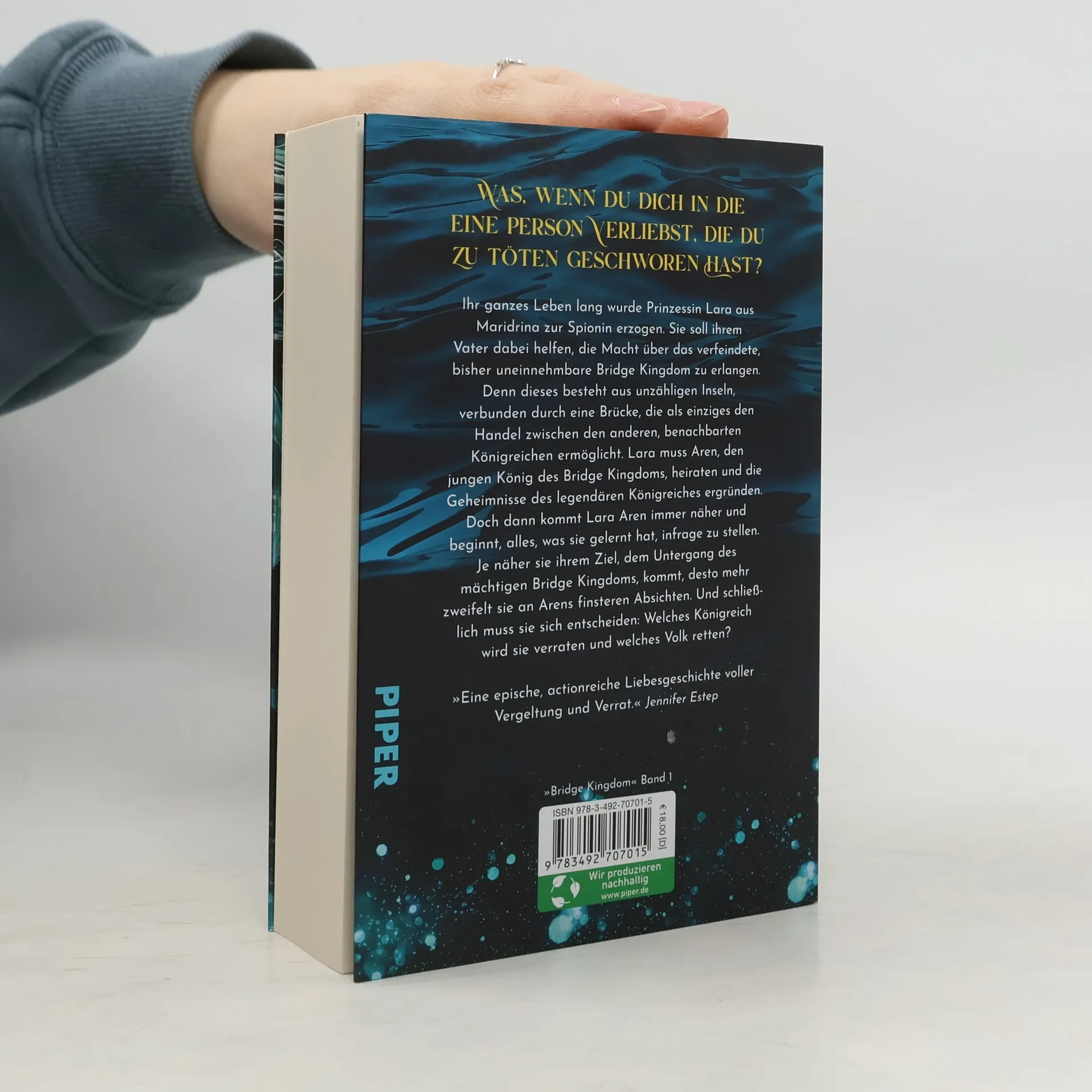 Episch, atemberaubend und herzzerreißend: der mitreißende Auftakt zur »Bridge Kingdom«-Reihe Danielle L. Jensen begeistert Fans von Sarah J. Maas & Jennifer Estep mit ihrer Enemies-to-Lovers Romantasy und stürmischem Karibik-Setting. Die Tik-Tok-Sensation könnt ihr nun endlich auch auf Deutsch lesen. Seid gespannt auf ein Königreich und ein Volk, das dafür lebt, ein Geheimnis zu schützen. Ihr ganzes Leben lang wurde Lara darauf vorbereitet, Aren, den König des mysteriösen Bridge Kingdom, zu heiraten und auszuspionieren, um ihrem Vater die Geheimnisse des bisher uneinnehmbaren Reiches zu offenbaren. Doch als Lara Aren näher kennenlernt, beginnt sie, alles infrage zu stellen, was man sie gelehrt hat. Und je näher sie ihrem Ziel, dem Untergang des mächtigen Bridge Kingdom, kommt, desto mehr verliebt sie sich in dessen mysteriösen König. Nun muss sie sich entscheiden: Welches Königreich wird sie zerstören und welches Volk retten? » Lauf nicht, sondern renn in die Buchhandlung, um dieses Buch zu kaufen! « Jennifer L. Armentrout » Eine epische und actionreiche Geschichte um Liebe, Rache und Verrat. « Jennifer Estep » Exzellent geplottet, bewegend und einfach unmöglich aus der Hand zu legen … Ich habe jedes Wort geliebt. « Sarah J. Maas #TikTok made me buy it Band 1: Bridge Kingdom - Der Schwur der Spionin Band 2: Bridge Kingdom - Der Verrat der Königin