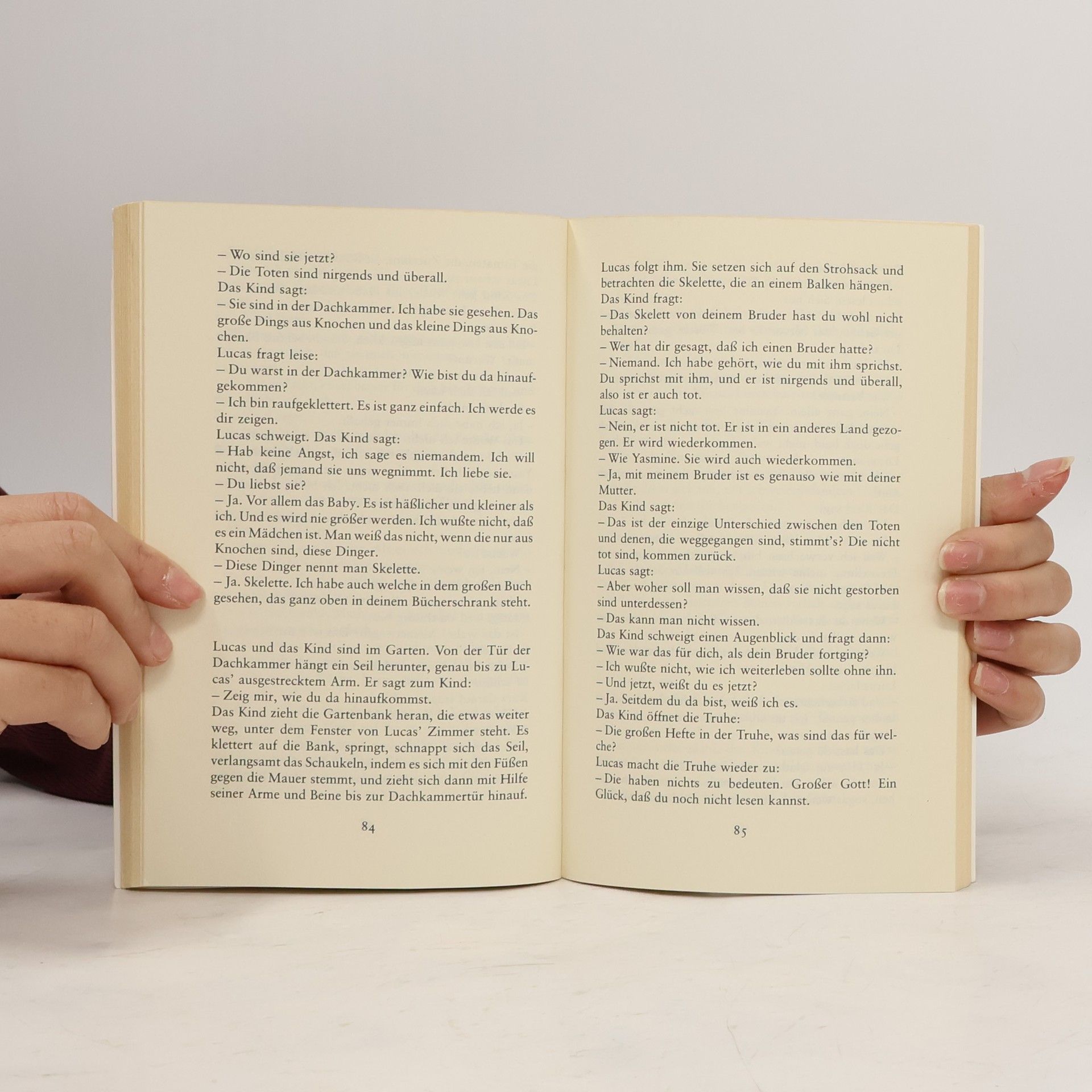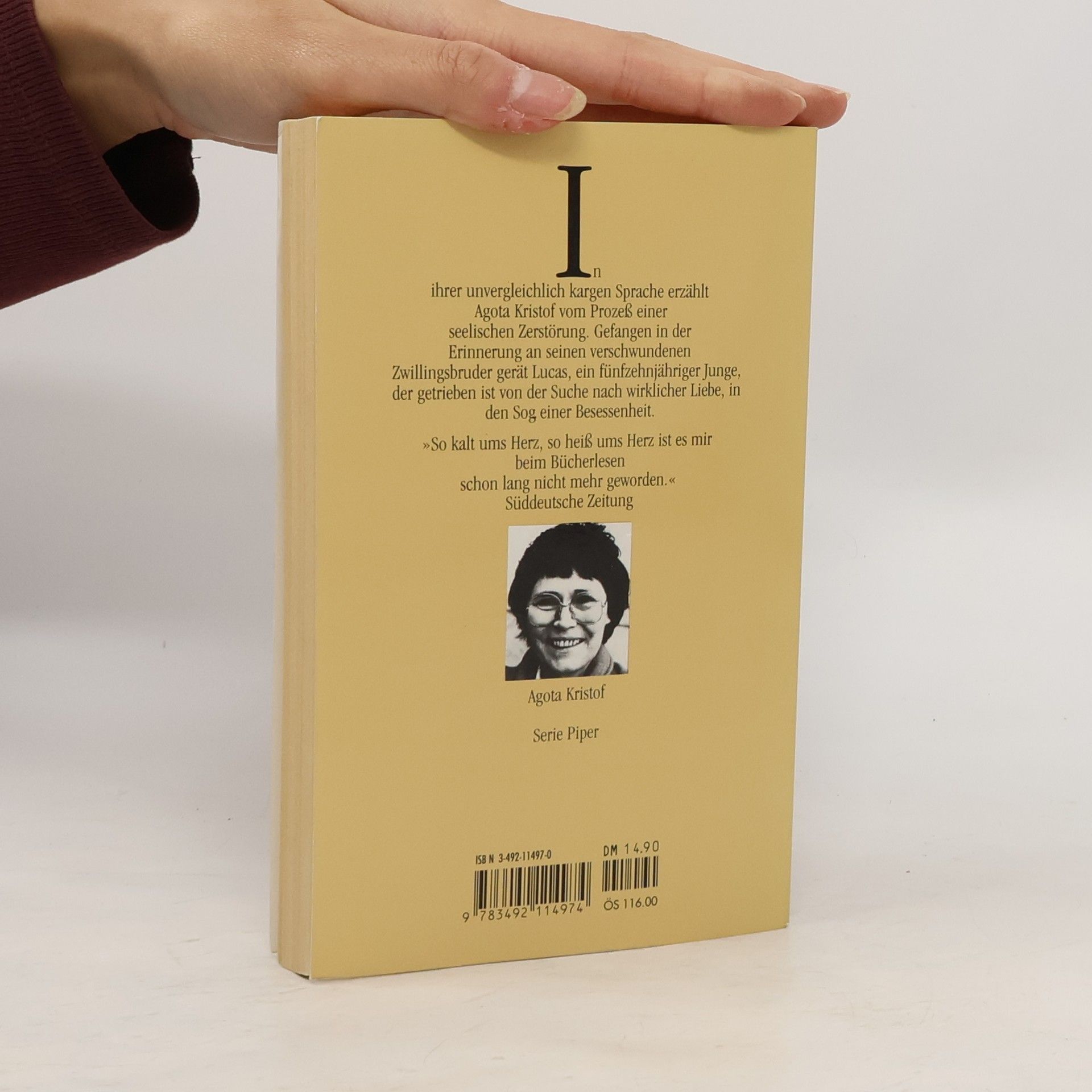 Wo Agota Kristofs Roman »Das große Heft« endet, beginnt dieses Buch: Die Zwillinge, jetzt Claus und Lucas genannt, trennen sich – der eine verschwindet über die Grenze. Lucas bleibt im Haus der Großmutter, im stalinistischen Niemandsland, gefangen in der Erinnerung an seinen Zwillingsbruder. Seine Versuche, Liebe zu finden, scheitern in trostloser Einsamkeit.