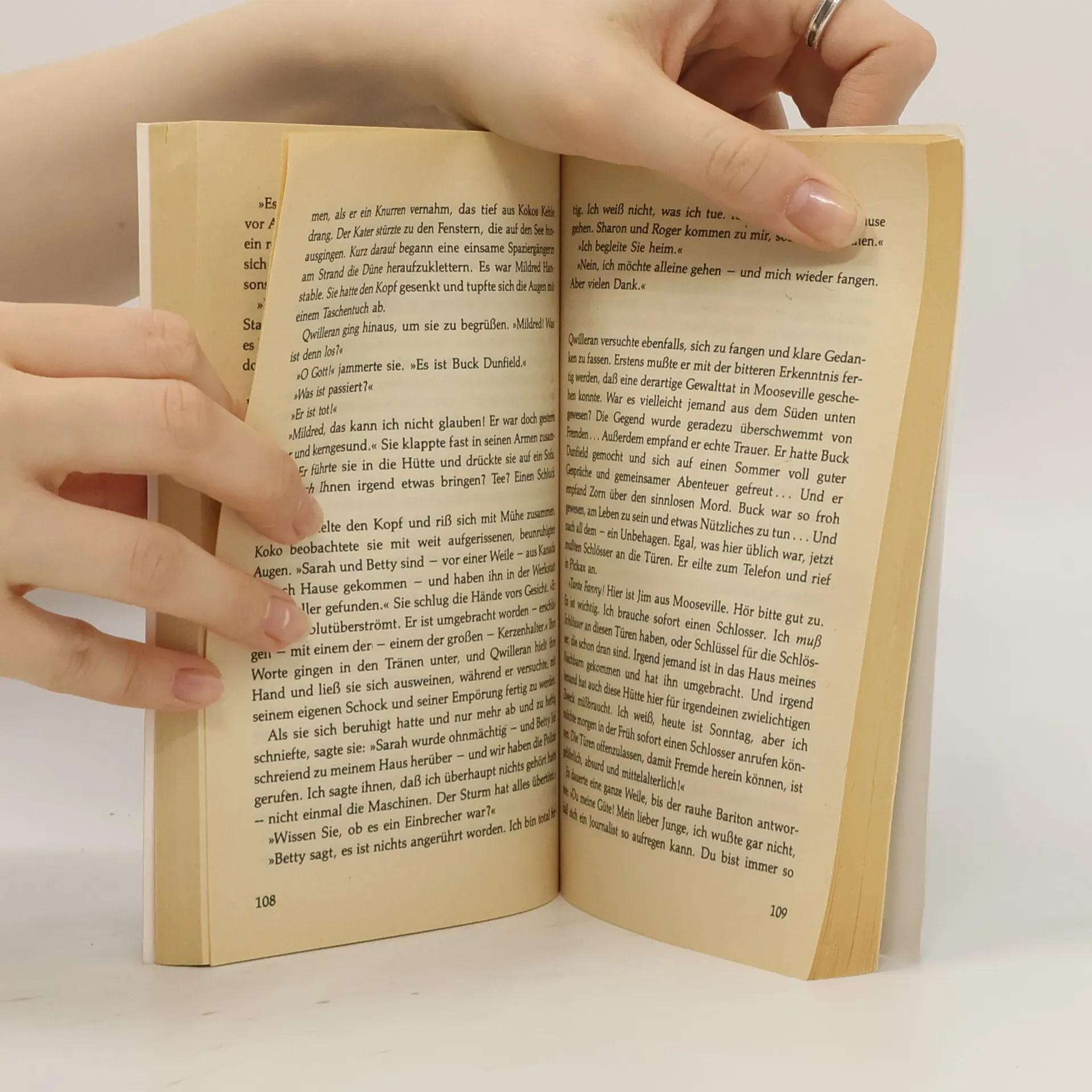 Bloß ein Anfall von sommerlichem Blues oder eine ausgewachsene Krise? Reporter-Veteran Jim Qwilleran ist sich nicht sicher, aber er hofft, ein paar ruhige Tage auf dem Land werden ihm helfen, mit sich ins Reine zu kommen. Doch mit der Ruhe wird es nichts. Dafür sorgen schon Koko und Yum Yum, seine beiden ungewöhnlichen Siamkatzen, die natürlich mit von der Partie sind. Und das ist gut so, denn bald geschehen merkwürdige Dinge. Rätselhafte Schritte auf dem Dach um Mitternacht, abweisende Dorfbewohner und ein grausiges Mordgeheimnis, das Qwilleran buchstäblich an der Angel hat. Wer wäre besser geeignet für das Katz-und-Maus-Spiel mit dem Mörder als Koko und Yum Yum? Doch wer hätte gedacht, dass Katzen nicht nur die besseren Menschen sind, sondern auch die besseren Musiker