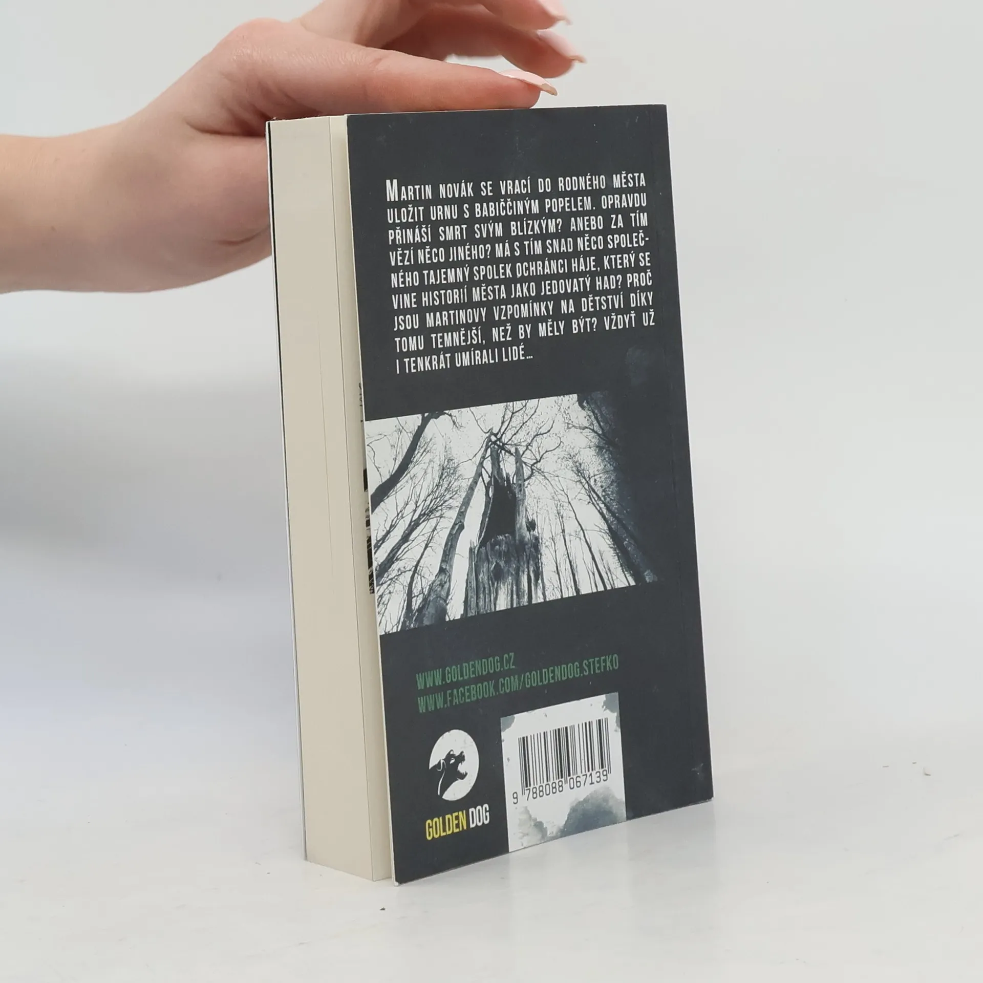 Martin Novák se vrací do rodného města uložit urnu s babiččiným popelem. Opravdu přináší smrt svým blízkým? Anebo za tím vězí něco jiného? Má s tím snad něco společného tajemný spolek Ochránci Háje, který se vine historií města jako jedovatý had? Proč jsou Martinovy vzpomínky na dětství díky tomu temnější, než by měly být? Vždyť už tenkrát umírali lidé...