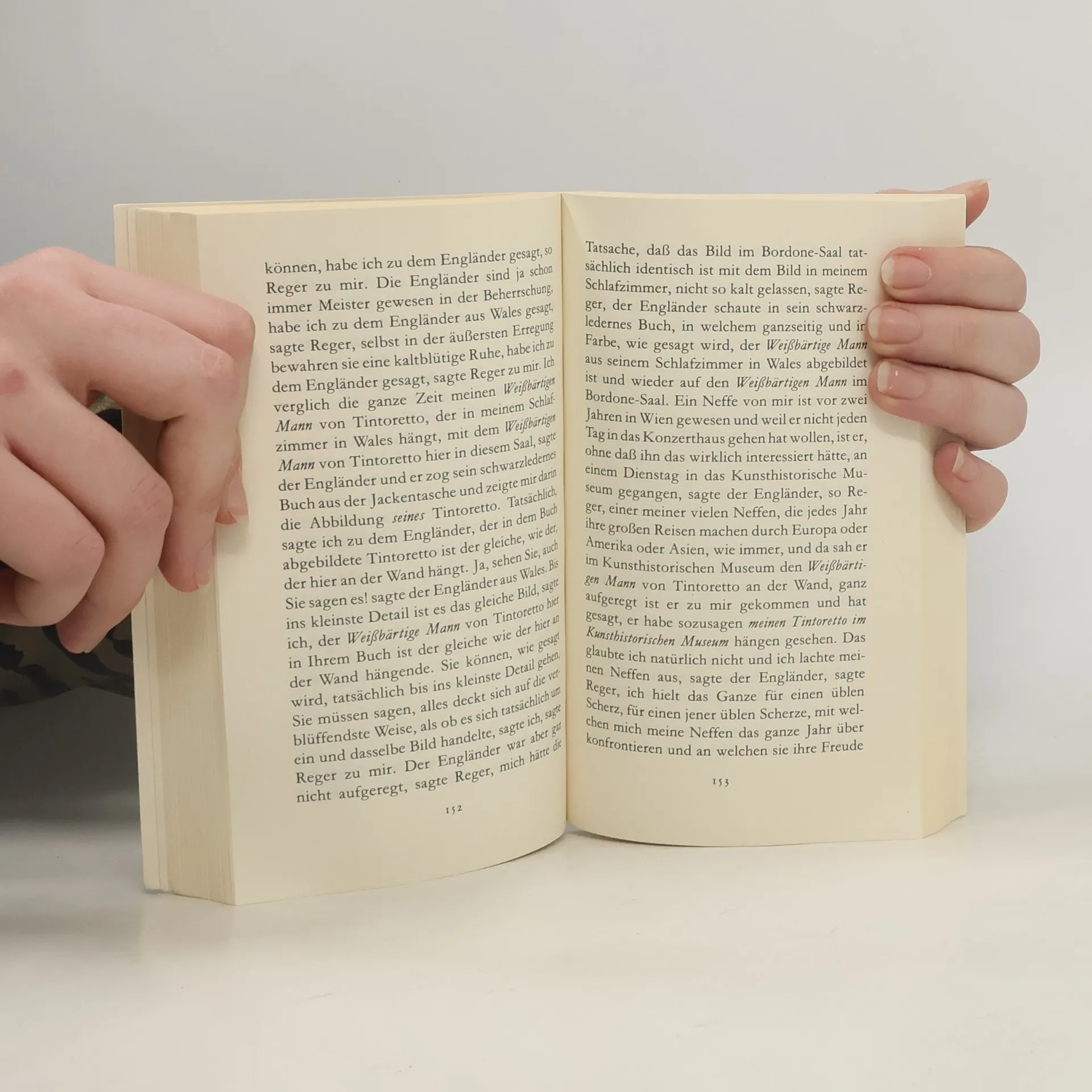 Das Durchbrechen einer jahrzehntealten Gewohnheit führt in dem 1985 zuerst erschienenen Prosaband mit dem Untertitel »Komödie« von Thomas Bernhard dazu, daß der Privatgelehrte Atzbacher und der Musikphilosoph Reger sich an zwei aufeinanderfolgenden Tagen im Wiener Kunsthistorischen Museum treffen. Atzbacher nimmt diese außergewöhnliche Verabredung zum Anlaß, den in seine Betrachtung versunkenen Reger zu beobachten. Der Zweiundachtzigjährige, der seit dreißig Jahren aus Wien für die Times Musikkritiken schreibt, hat im Kunsthistorischcn Museum seine Kunstbetrachtung zur Perfektion entwickelt: Sie besteht darin, jedes Kunstwerk, das für vollendet gehalten wird, so lange zu studieren, bis dessen Fehler aufgedeckt sind. Alle Alten Meister und Großen Geister sind unvollkommen. Daß Kunst, Musik, Philosophie und Literatur jedoch nicht das »Höchste, Allerhöchste« sind, wird Reger bewußt, als seine Frau stirbt, mit der er mehr als drei Jahrzehnte verheiratet war.