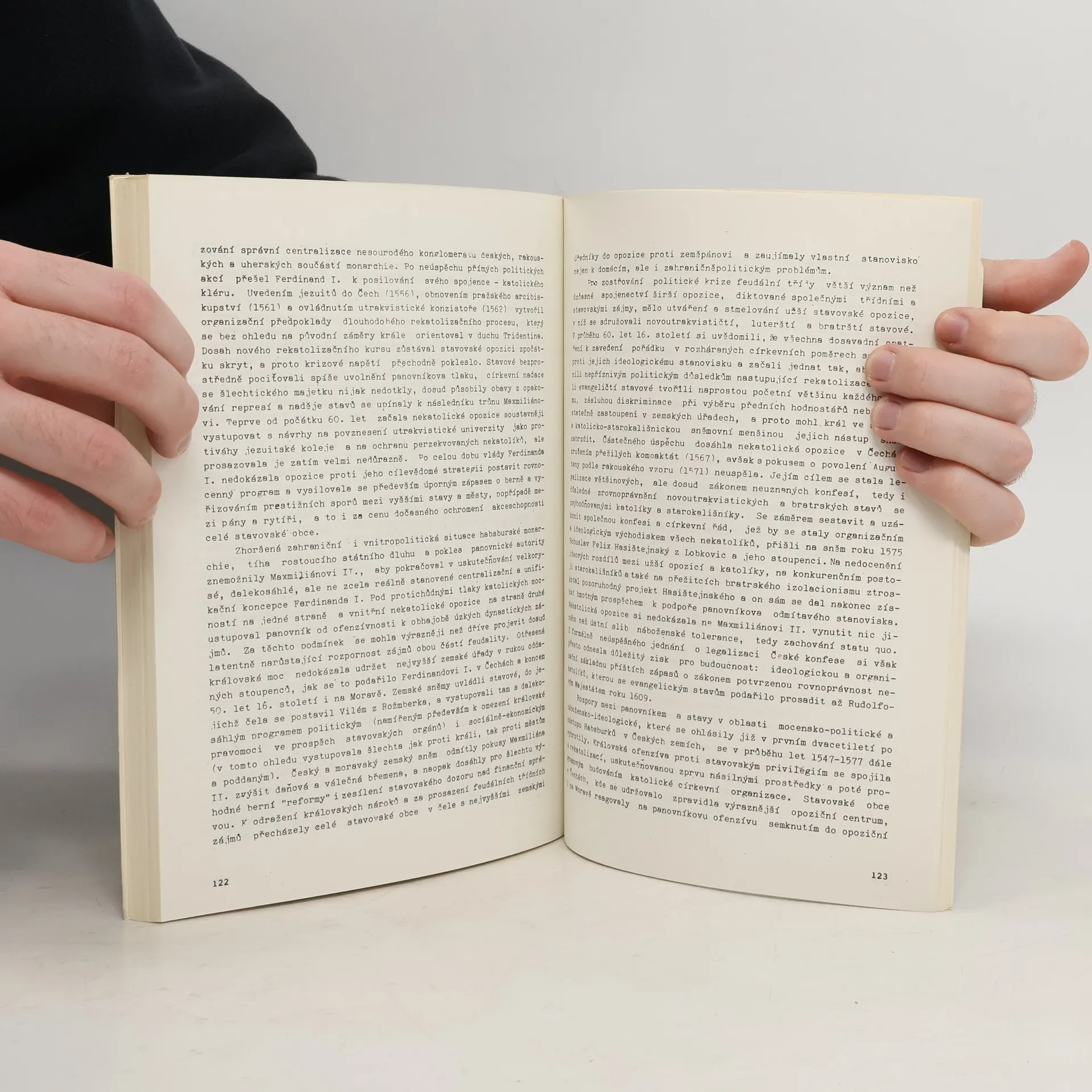 Studie je utříděna do těchto oddílů: Posílení panovnické moci jako bezprostřední důsledek porážky prvního protihabsburského odboje v Čechách roku 1547, Zastavení královské ofenzívy rezistencí stavů a nová formulace stavovského programu v letech 1548-1555, Sepětí politiky Ferdinanda I. skatolickou protireformací a vystupňování zápasu stavů o berně v letech 1555-1564, Prohloubení rozkolu mezi panovníkem a opozicí za Maxmiliána II. (1564-1574), Zápas o jednotu stavovské opozice při projednávání České konfese a jeho výsledky (1575-1577).