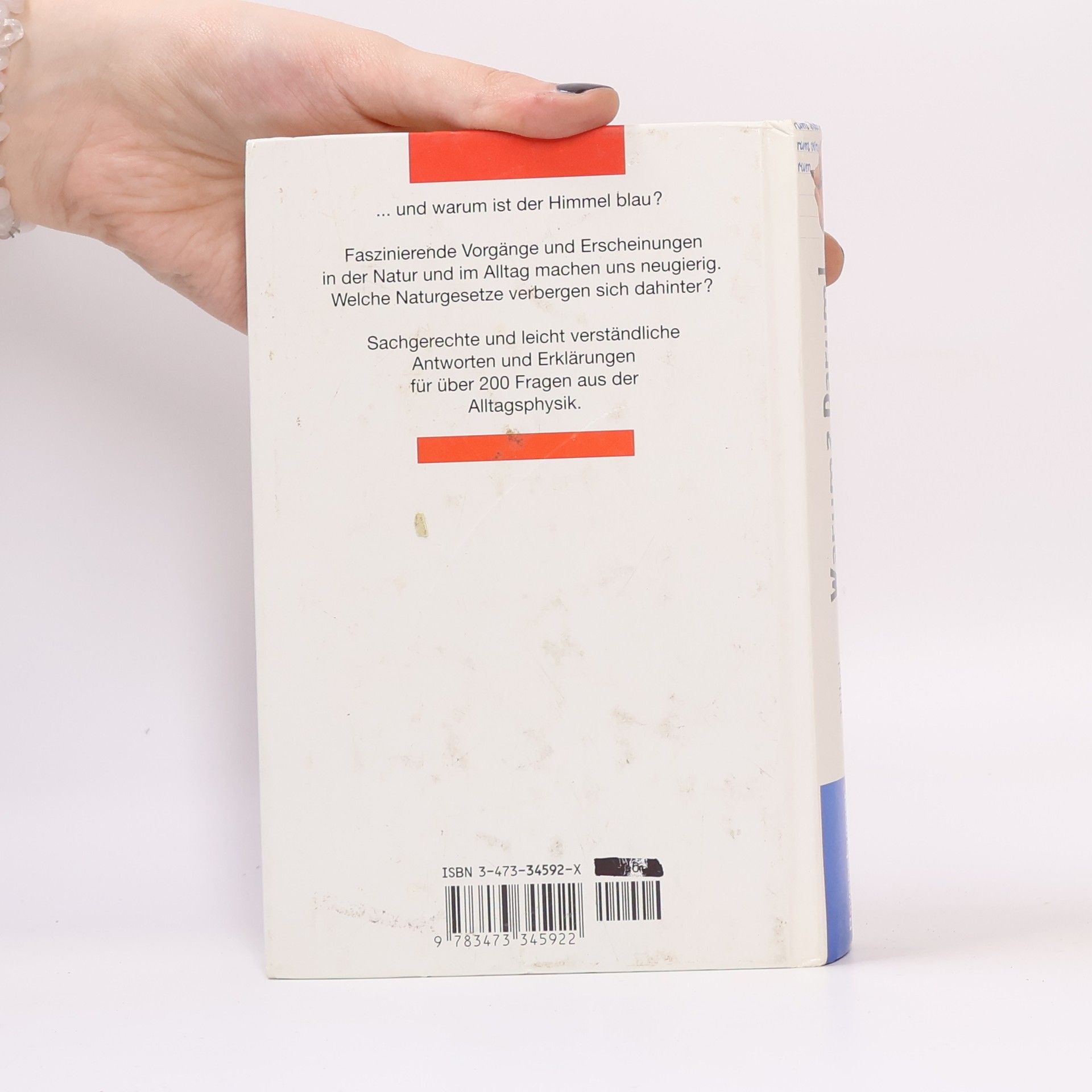 Enthält über 200 kurze Schilderungen von alltäglichen Vorgängen oder Erscheinungen mit allgemeinverständlichen Erklärungen des physikalischen Hintergrundes. (ab 10).