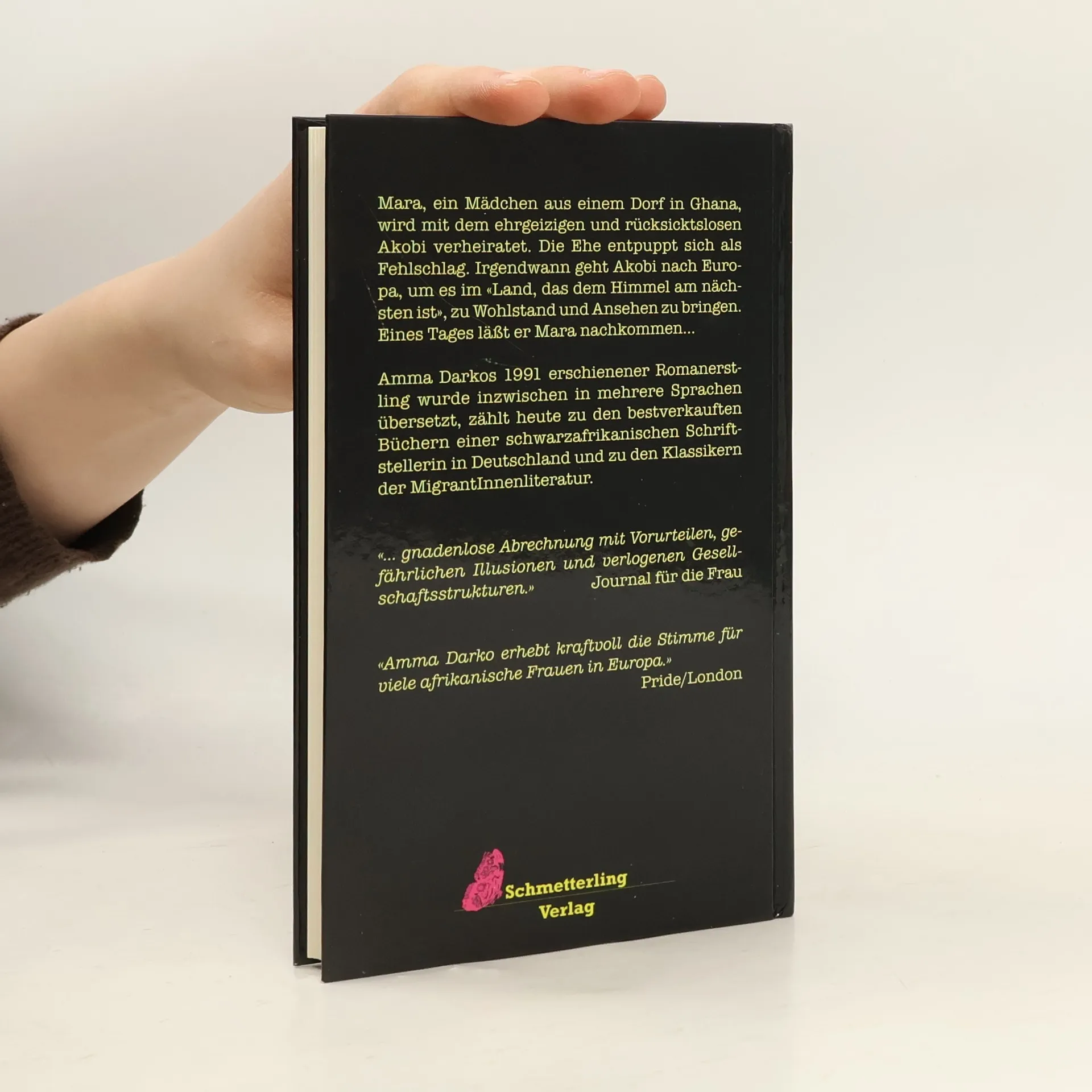 Mara, ein Mädchen aus einem Dorf in Ghana, wird mit dem ehrgeizigen und rücksichtslosen Akobi verheiratet. Die Ehe entpuppt sich als Fehlschlag. Irgendwann geht Akobi nach Europa, um es im 'Land, das dem Himmel am nächsten ist', zu Wohlstand und Ansehen zu bringen. Eines Tages läßt er Mara nachkommen. Dieser Roman zählt heute zu den bestverkauften Büchern einer schwarzafrikanischen Schriftstellerin in Deutschland und zu den Klassikern der MigrantInnenliteratur.