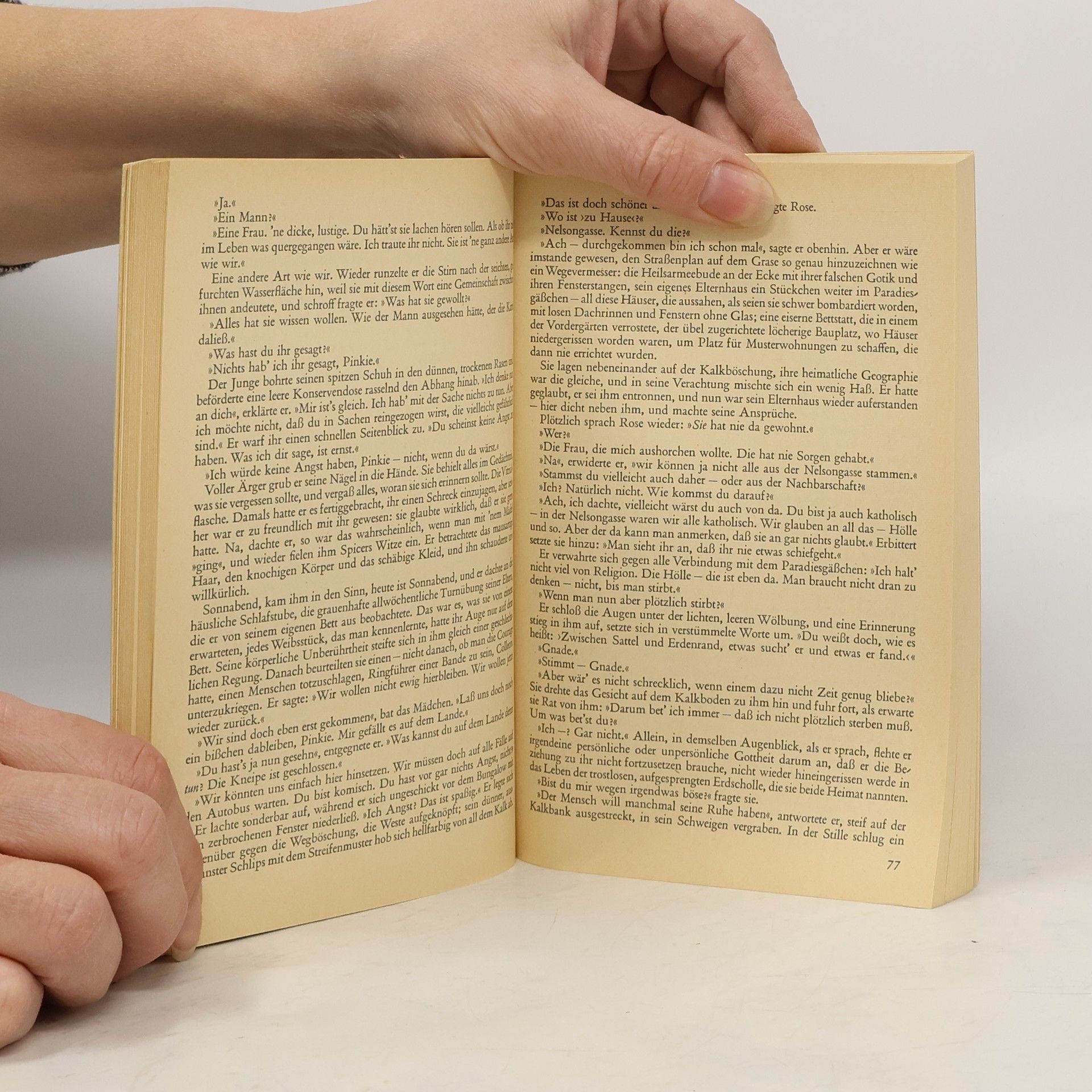 An den äußeren Grenzen der Gesellschaft, am Rande der Großstadt, entscheidet sich das Schicksal des kleinen Ganoven Pinkie und der Kellnerin Rose. In den Kreisen dieser Menschen scheint alles, was wir als Gesetz, Recht und Tradition gesichert glauben, unbekannt. Geschüttelt vom Grauen, das sie umgibt, führen sie einen gnadenlosen Kampf ums Dasein am Abgrund des Lebens. Mit diesem Buch erhebt Graham Greene die moralische Forderung an alle, mitzuhelfen, damit die Welt nicht zu einem Inferno der Verzweiflung und der Maßlosigkeit wird, um schließlich daran zugrunde zu gehen.
