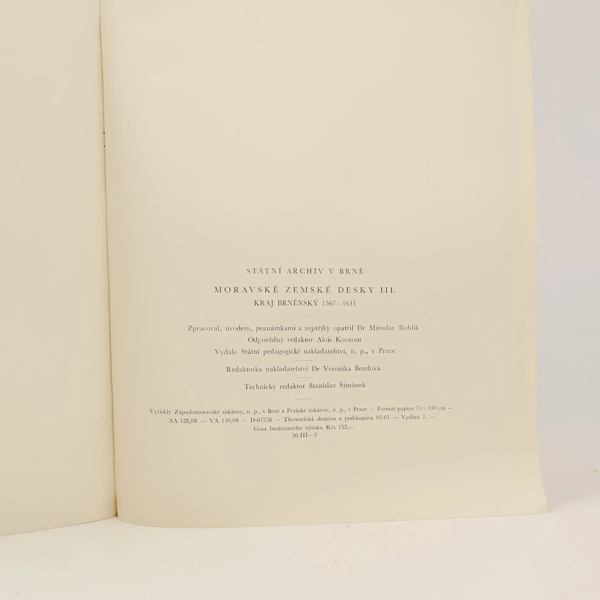 Moravské Zemské Desky - III. díl - Kraj Brněnský, 1567-1641, zprac. Miloslav Rohlík