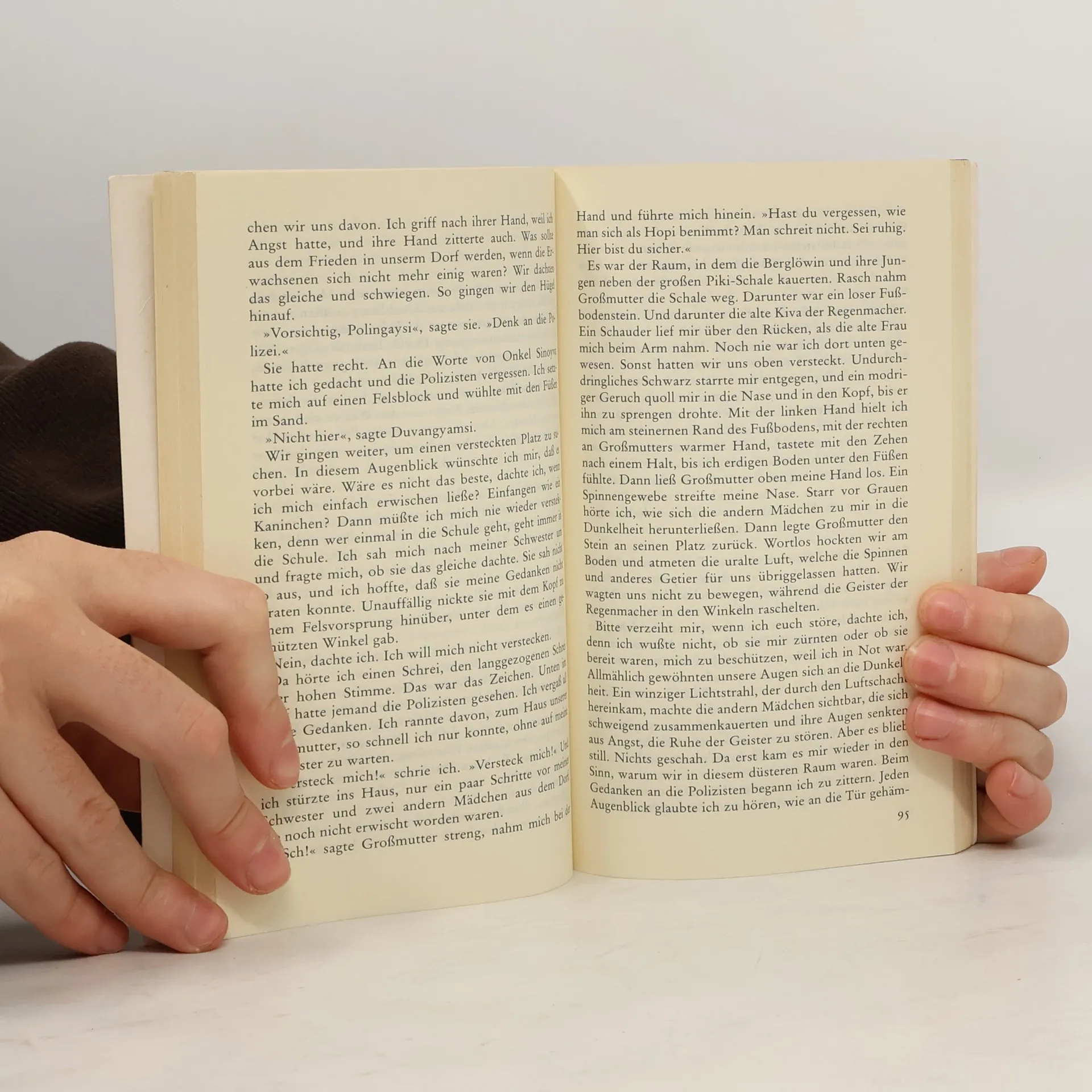 Polingaysi war 14 Jahre alt, als sie das Hopi-Dorf verließ, um in die Schule der Weißen einzutreten. Vier Jahre später kehrt sie zurück nach Oraibi: verändert, vielen Traditionen ihres Volkes entfremdet, aber auch nicht aufgehoben in der Welt der Weißen. Ihr Leben lang wird sie versuchen, eine Brücke zwischen beiden Welten zu schlagen. Hanna Johansens Roman beruht auf einem authentischen Lebensbericht. Es gelingt ihr beispielhaft, die auf den ersten Blick so rätselhafte und fremde indianische Welt zu erschließen und als ein harmonisches und sinnvolles Gefüge erkennbar zu machen.