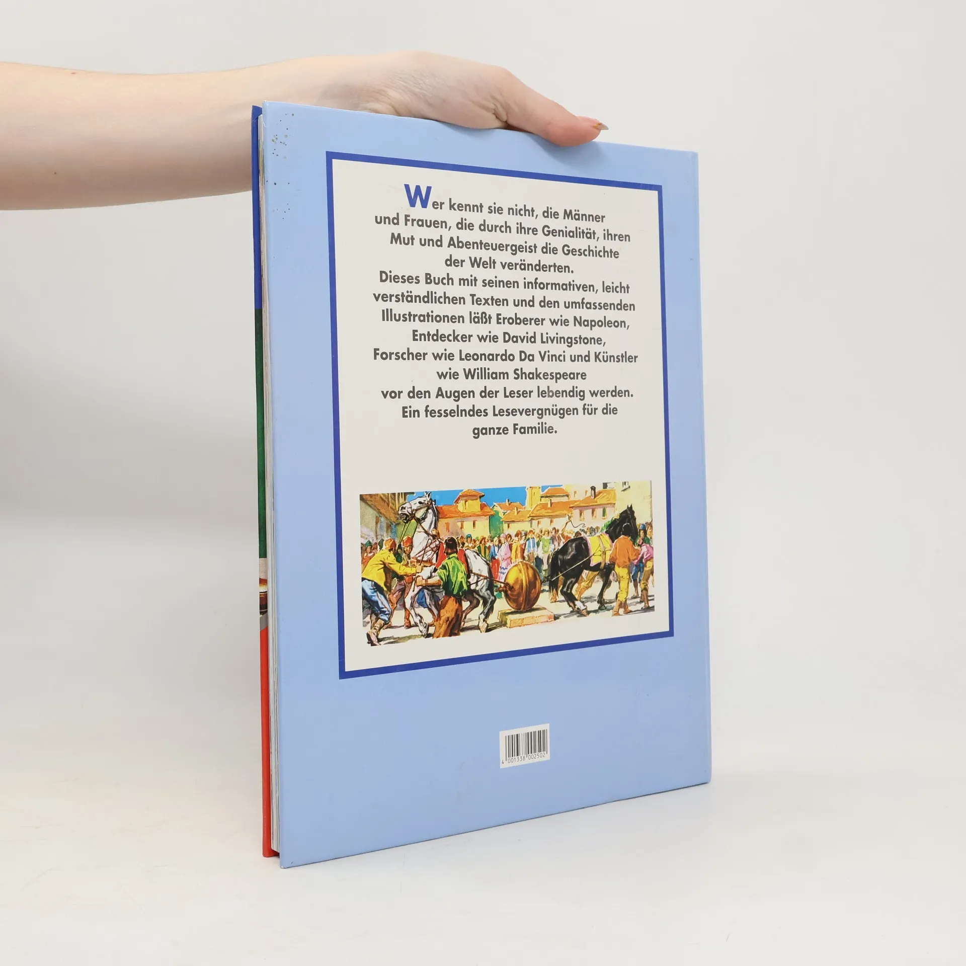 Wer kennt sie nicht, die Männer und Frauen, die durch ihre Genialität, ihren Mut undd Abenteuergeist die Geschichte der Welt veränderten.Dieses Buch mit seinen informativen, leicht verständlichen Texten und den umfassenden Illustrationen läßt Eroberer wie Napoleon, Entdecker wie David Livingstone, Forscher wie Leonardo Da Vinci und Künstler wie William Shakespeare vor den Augen der Leser lebendig werden.Ein fesselndes Lesevergnügen für die ganze Familie.[Klappentext]
