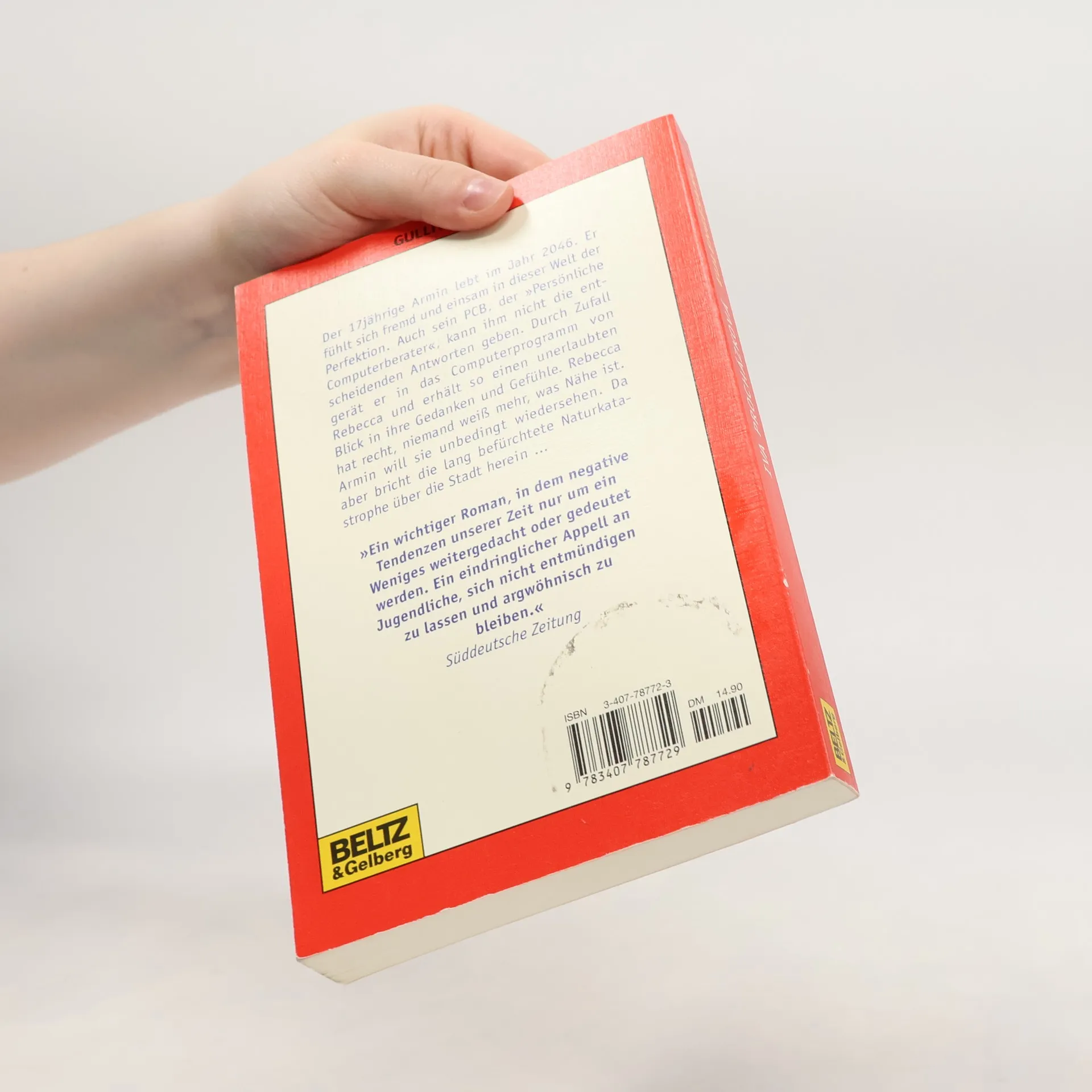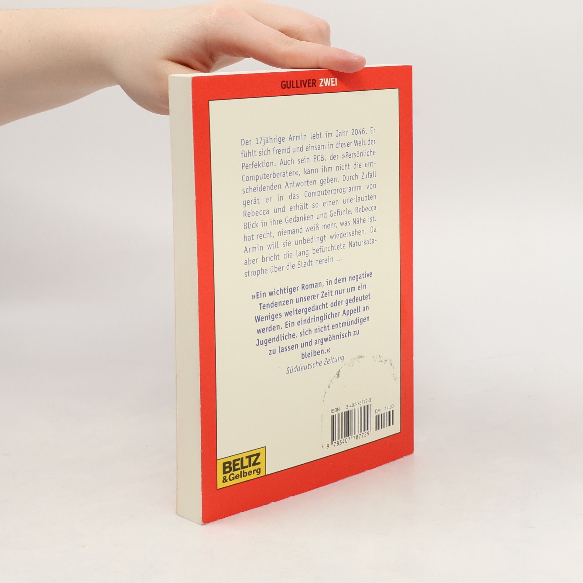 Ein Roman aus der Zukunft. Der 17-jährige Armin lebt im Jahr 2046. Er fühlt sich fremd und einsam in dieser Welt der Perfektion. Auch sein PCB, der Persönliche Computerberater, kann ihm nicht die entscheidenden Antworten geben. Durch Zufall gerät er in das Computerprogramm von Rebecca und erhält so einen unerlaubten Blick in ihre Gedanken und Gefühle. Rebecca hat Recht, niemand weiß mehr, was Nähe ist. Armin will sie unbedingt wiedersehen. Da aber bricht die lang befürchtete Naturkatastrophe über die Stadt herein.